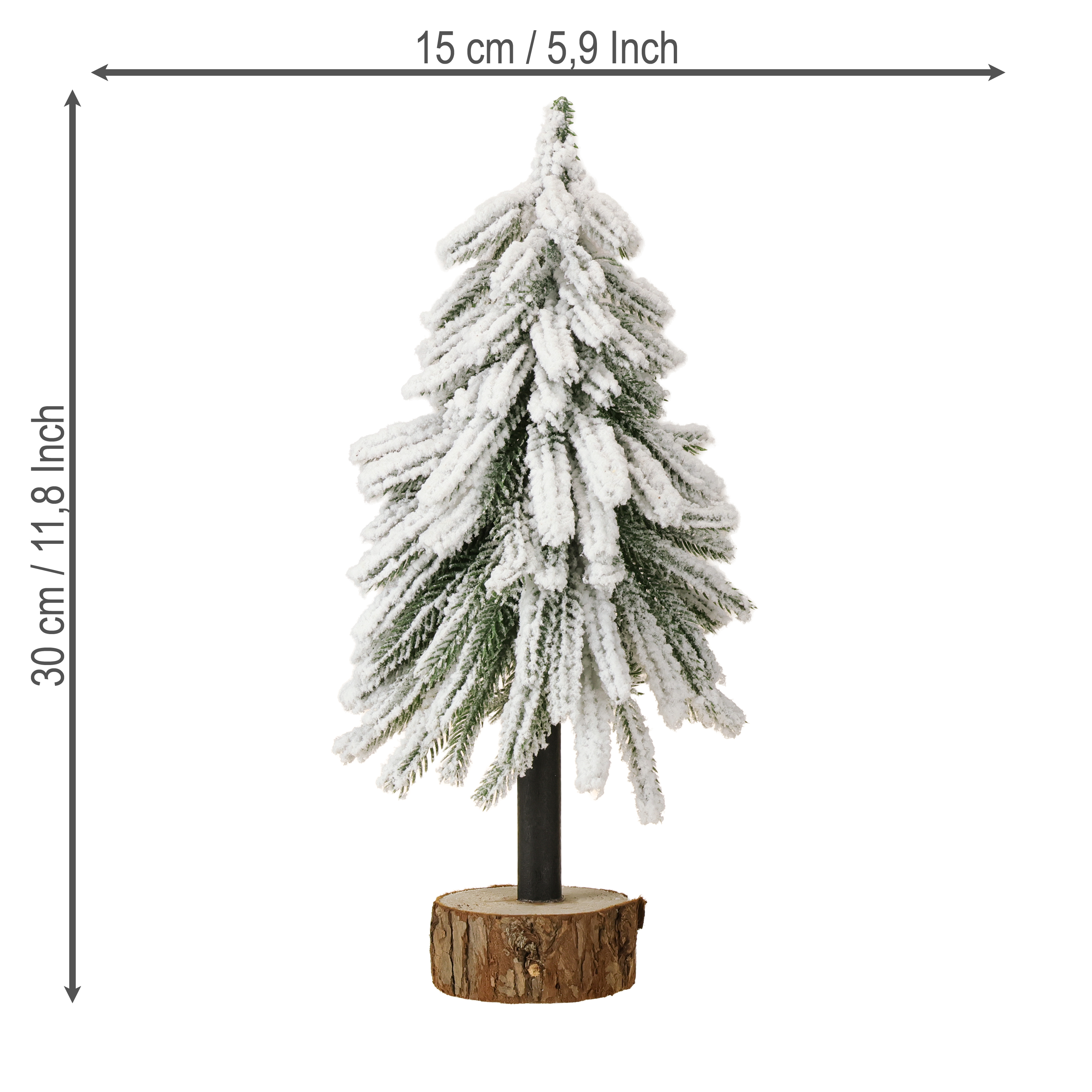 Albero di Natale decorativo ricoperto di neve su base in legno Ø15cm H30cm