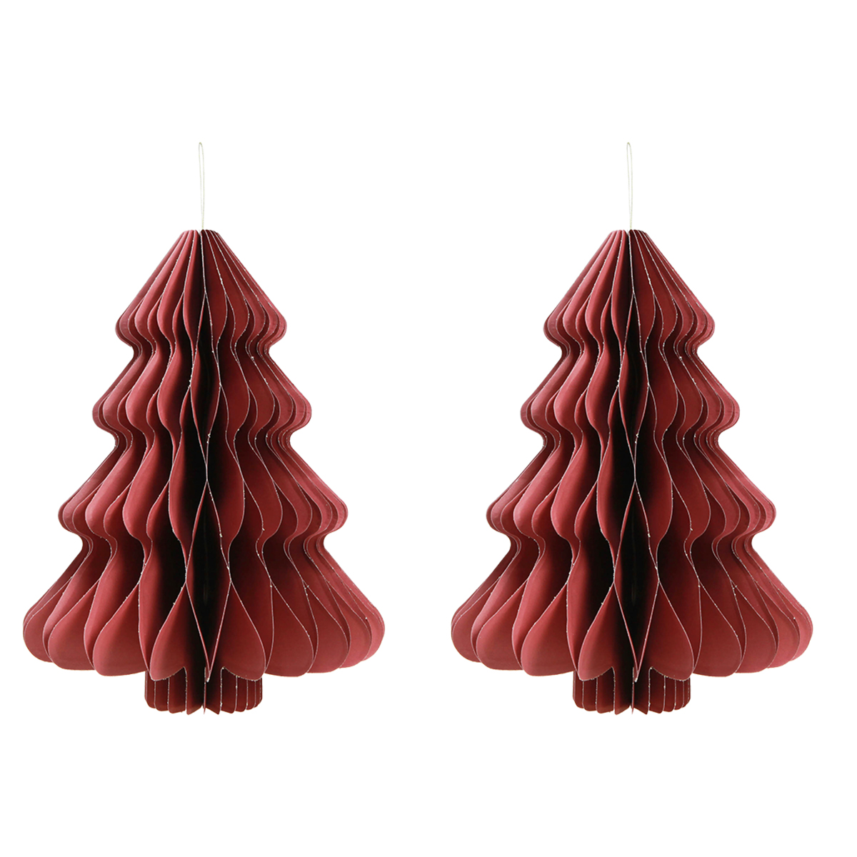 Albero di Natale in carta da appendere Bordeaux H40cm 2 pezzi