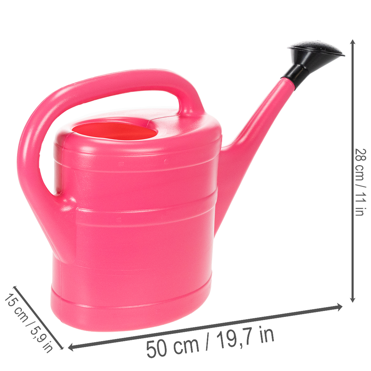 Perfetto per il balcone! Questo annaffiatoio rosa, con una capacità di circa 5 litri, è pratico, affidabile e robusto, ideale per innaffiare le piante in patio, sul balcone o in giardino. L'erogatore d'acqua è dotato di una comoda impugnatura che garantisce un buon equilibrio anche a pieno carico. Oltre all'annaffiatoio, riceverete anche un diffusore a rosetta nero da applicare per innaffiare le piante più delicate con la giusta quantità d'acqua.