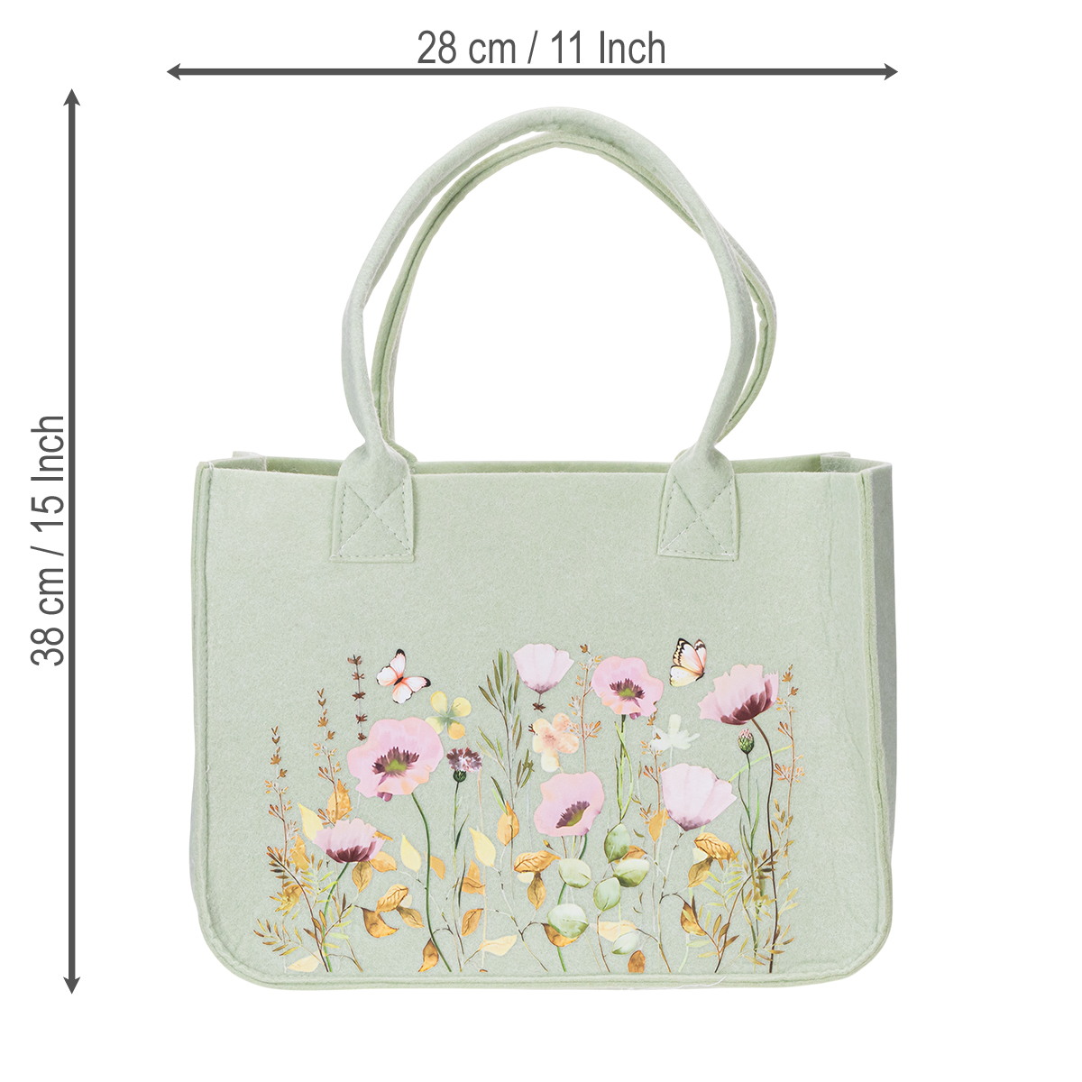 Realizzata in robusto feltro in un elegante verde, questa borsa porta un tocco di natura e sprigiona un fascino estivo. Il motivo floreale, accuratamente disegnato sul davanti, le conferisce un aspetto unico che ricorda i prati estivi in fiore. Che sia per le commissioni quotidiane, come elegante compagna in ufficio o anche come pratica borsa per lo shopping, questa borsa è adatta a quasi tutte le occasioni. E la parte migliore? Offre abbastanza spazio per tutto il necessario per la vita quotidiana o per le gite fuori porta.