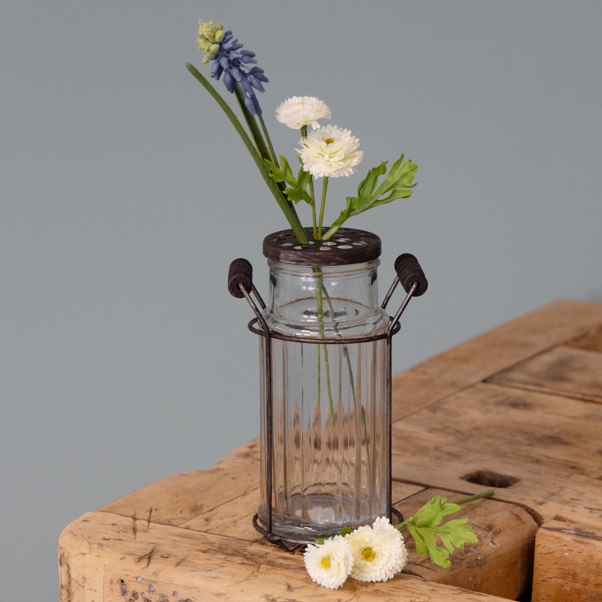 La combinazione di vetro e metallo conferisce un tocco di stile industriale alla vostra casa, mentre la delicata lavorazione artigianale crea un classico colpo d'occhio. Realizzata in vetro di alta qualità e con una robusta struttura in metallo, questa bottiglia colpisce non solo per l'aspetto, ma anche per la sua durevolezza. Il coperchio con le sue piccole aperture la rende particolarmente versatile: usatela come vaso per fiori singoli, come portautensili decorativo da cucina o anche come creativo portacandele. Che sia in soggiorno, in cucina o in corridoio, questa bottiglia di vetro troverà il suo posto ovunque.