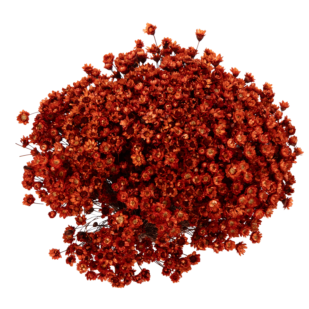 Questo bouquet di fiori secchi è un'armoniosa combinazione di fiori di glixia e delicati fiori d'erba scintillanti. Con la sua gradevole palette di colori rossi e naturali, dona calore e consistenza a qualsiasi ambiente. Che sia posizionato su una cassettiera all'ingresso, su una mensola del soggiorno o come centrotavola sul tavolo da pranzo, questa composizione crea un effetto discreto. La sua longevità è particolarmente degna di nota: una volta posizionato, questo bouquet rimane magnifico e fresco per molti mesi. Chi ama la creatività può anche utilizzarlo per sofisticati progetti fai da te, come composizioni artistiche di fiori secchi. Abbinalo ad altri elementi decorativi naturali come vasi in legno o ceramica per un'estetica armoniosa. Questo bouquet aggiunge anche un tocco speciale alle occasioni festive come matrimoni o feste di compleanno. Semplicemente sbalorditivo, perfetto per chi apprezza l'eleganza naturale.
