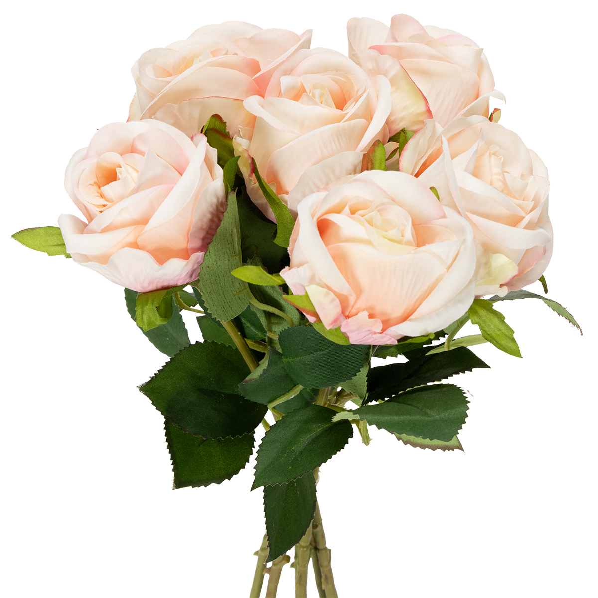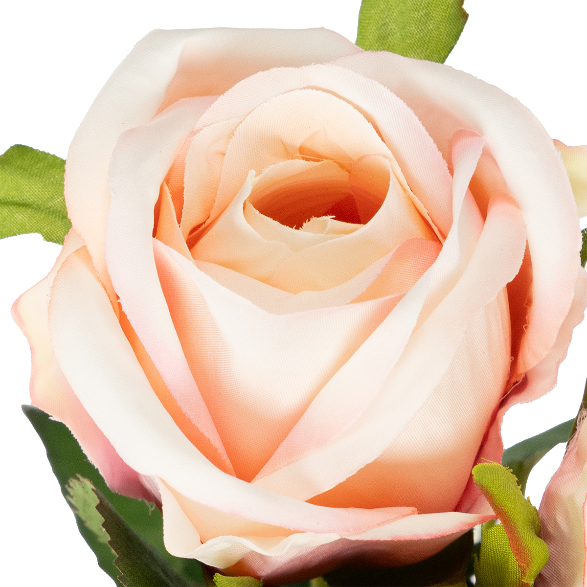 Ami il fascino delle rose ma vuoi evitare la fatica di prendertene cura? Nessun problema! Con il nostro bouquet di rose artificiali, puoi portare la bellezza senza tempo della regina dei fiori direttamente a casa tua. Perfetto per chi apprezza decorazioni eleganti senza bisogno di fiori freschi. Che sia un punto focale in soggiorno, un'affascinante decorazione da tavola per occasioni speciali o un regalo raffinato, questo bouquet di rose dona un'atmosfera speciale a qualsiasi stanza. I delicati fiori di seta rosa abbinati alle foglie verdi sembrano così incredibilmente realistici che potresti quasi dimenticare che sono artificiali. I tuoi ospiti rimarranno a bocca aperta!