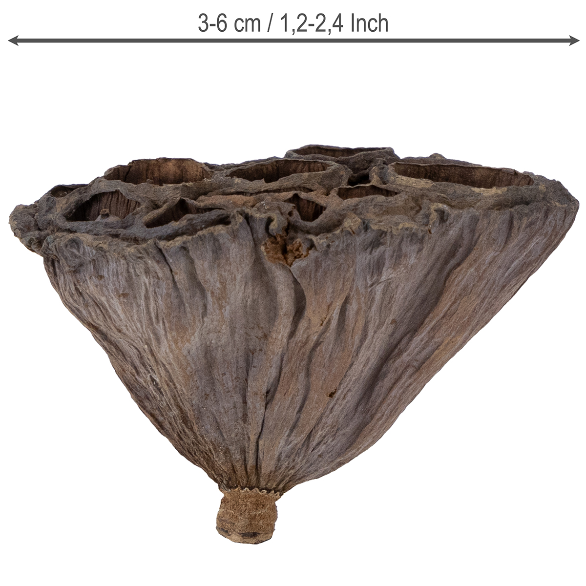 Le boccette di loto a forma conica sono state essiccate, ma contengono ancora parzialmente i semi e sono in un sacchetto di plastica per un totale di 100 pezzi. Poiché si tratta di prodotti naturali, le dimensioni possono variare. Le capsule sono lunghe approssimativamente tra 3,5 e 7 centimetri e ognuna ha un diametro da 3 a 6 centimetri.
