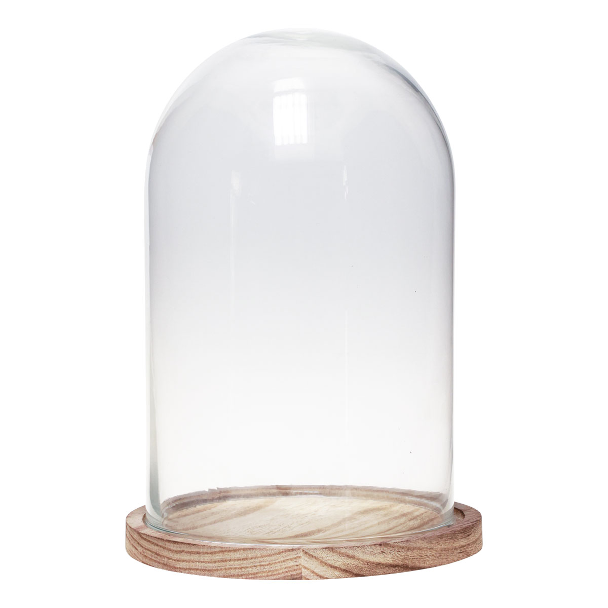 Campana in vetro con decorazione in vetro piatto in legno Ø17cm H25cm
