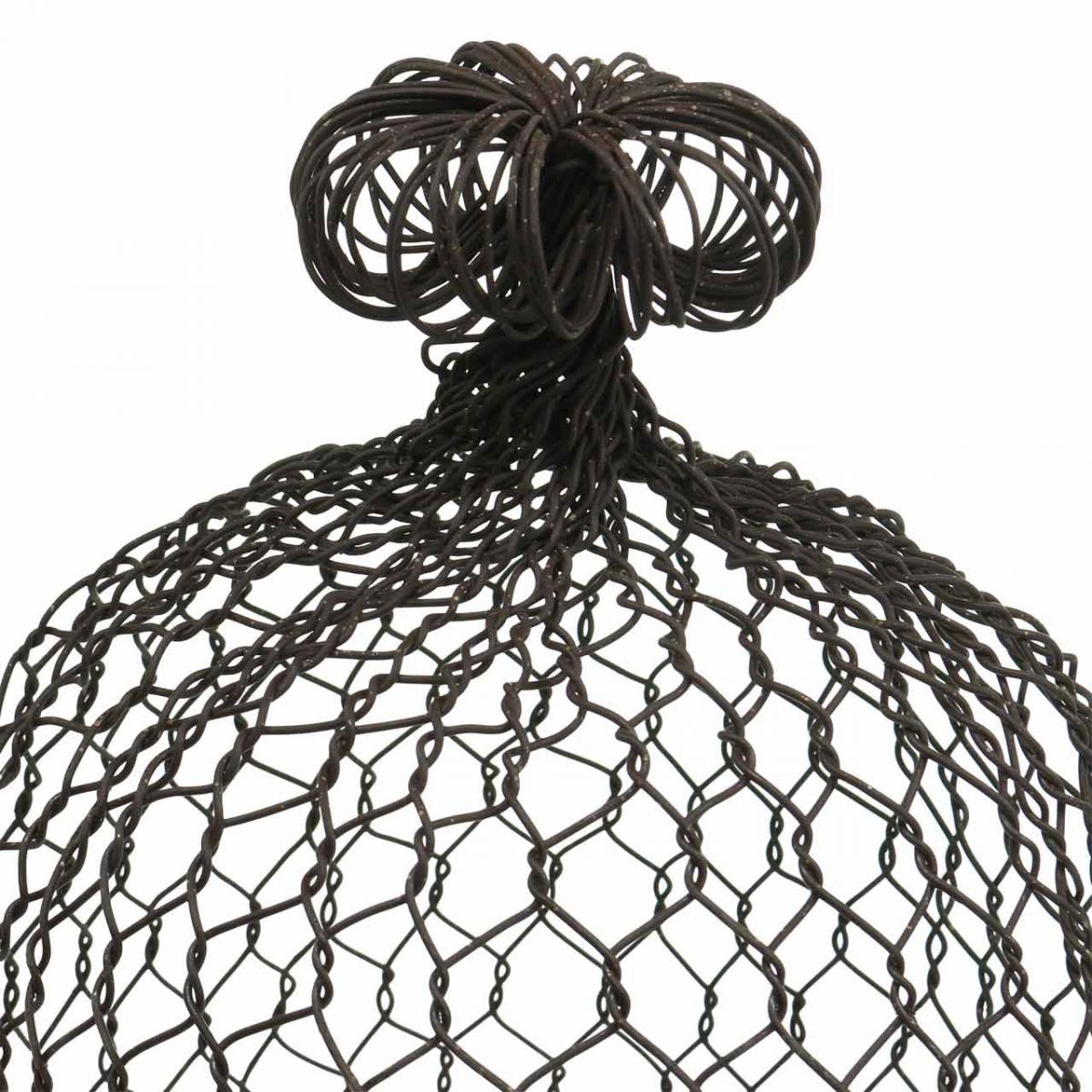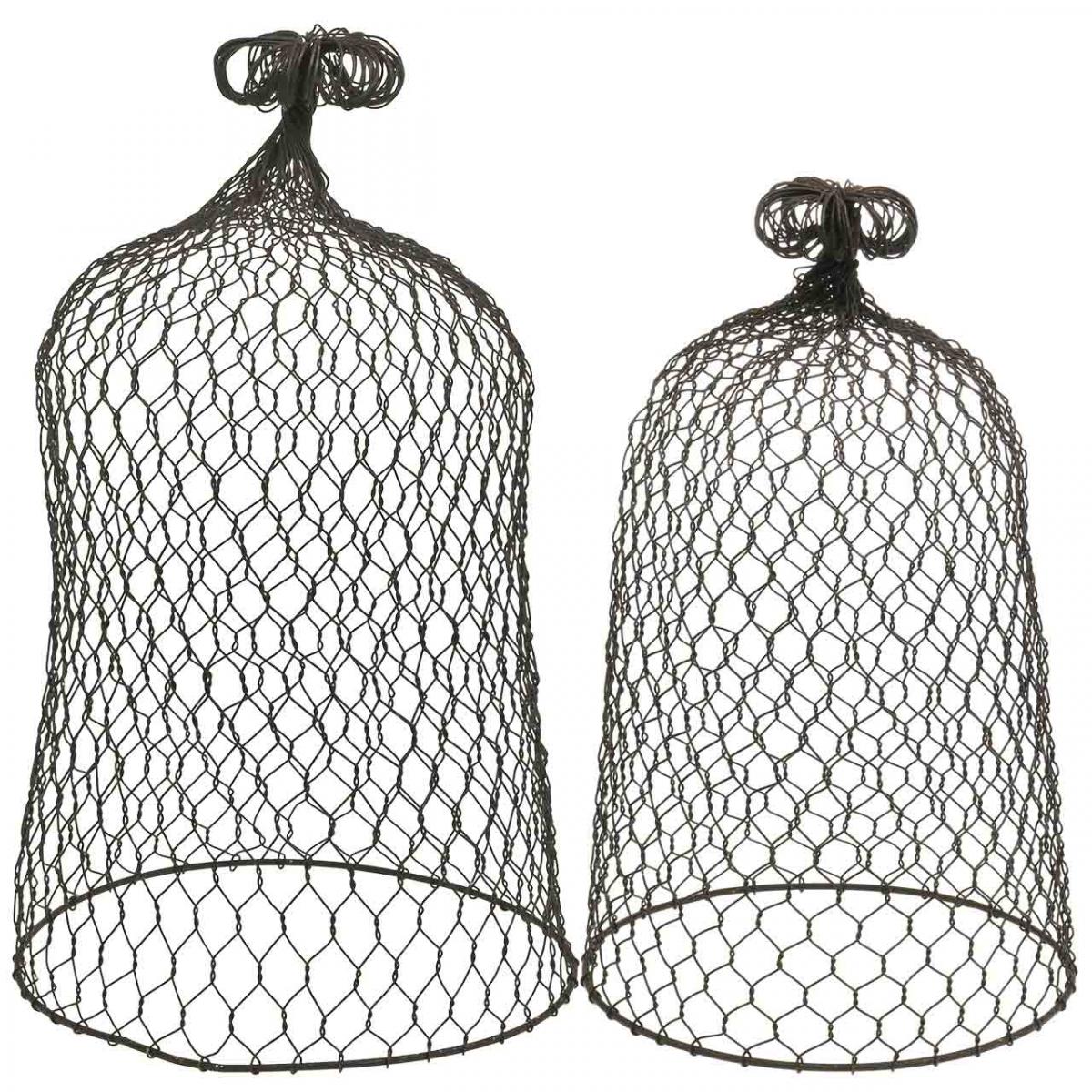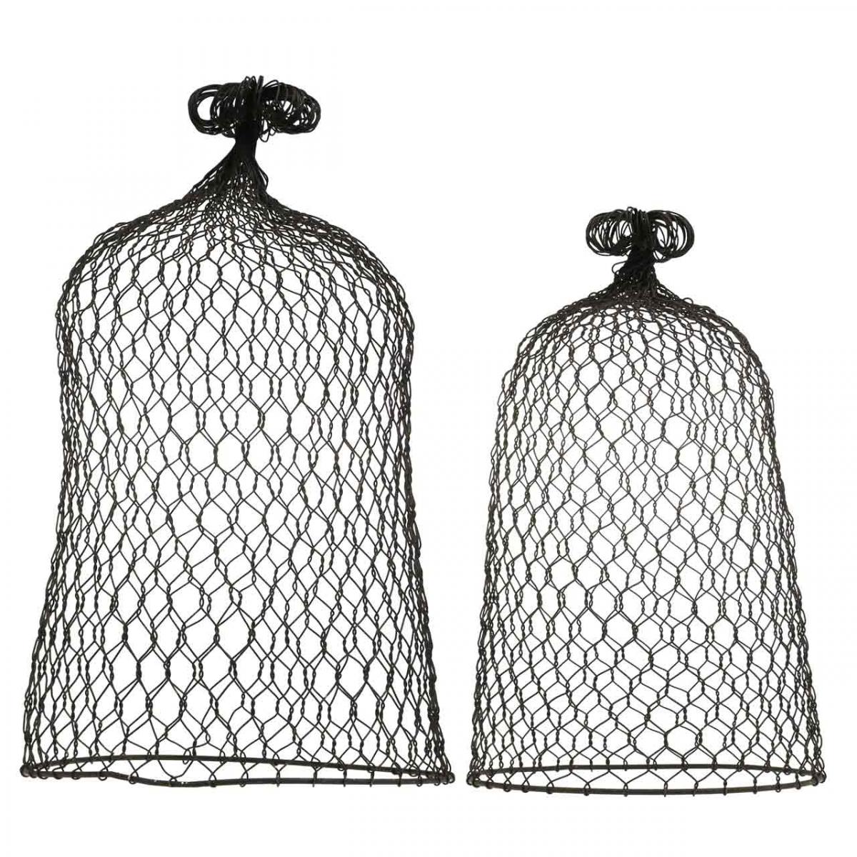 Realizzato in filo di metallo marrone scuro e leggermente decorato con patina in alcuni punti, il set di due campanelli in metallo è disponibile in due dimensioni e dispone anche di una maniglia per il sollevamento.
