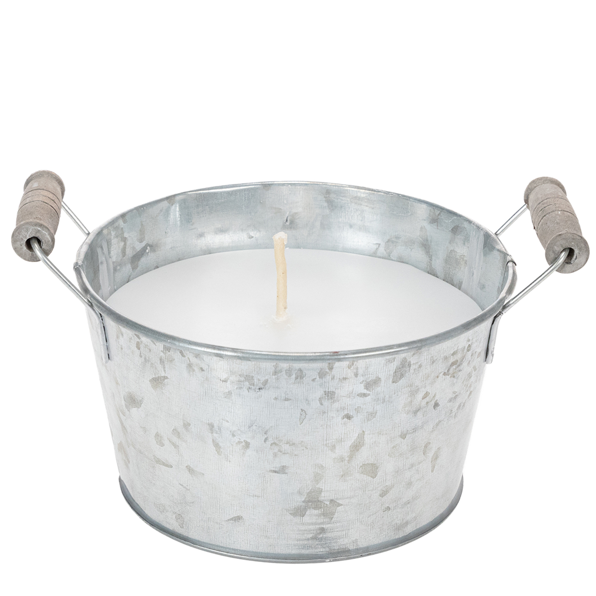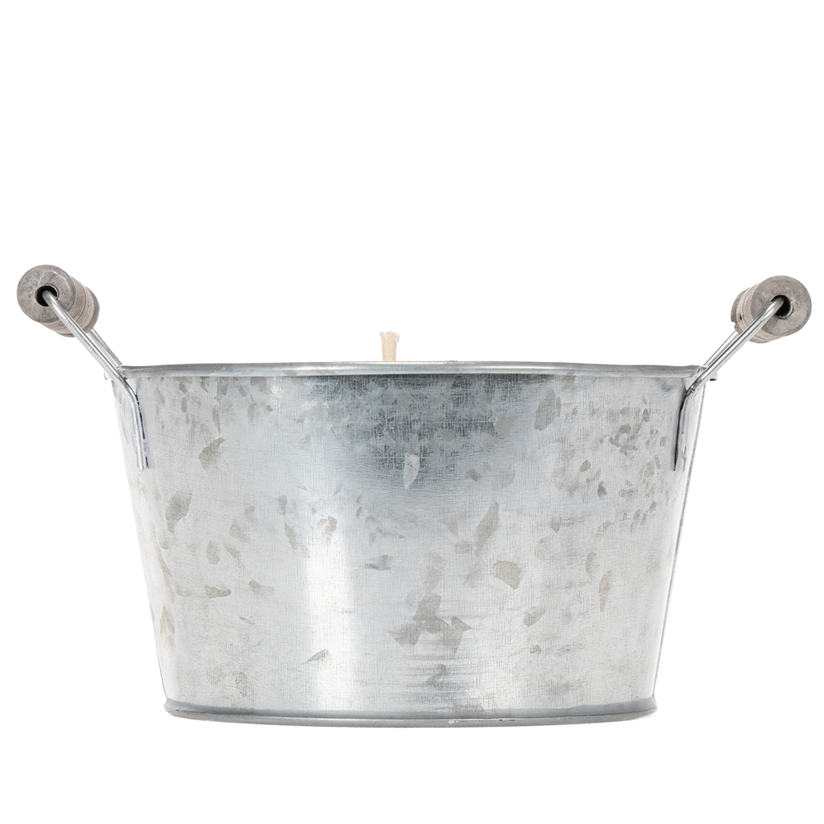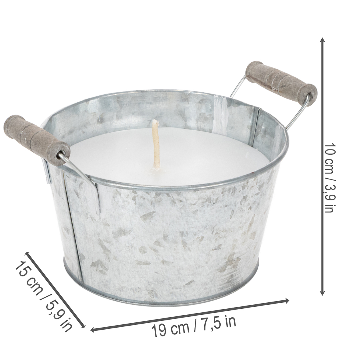 Candela in secchiello di zinco per creare atmosfera su terrazza e balcone, 15 cm.