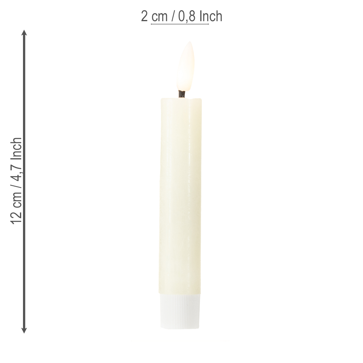Le candele sono alte 14,5 cm e ideali per eleganti portacandele di dimensioni standard, così come per le corone dell'Avvento. La loro magia non si limita alle decorazioni natalizie. Funzionano a batteria e senza fili, quindi possono essere utilizzate ovunque, senza bisogno di una presa di corrente! Che siano sul davanzale della finestra, sulla tavola o come parte di un romantico progetto fai da te, queste candele affusolate sono versatili e conferiscono a qualsiasi ambiente un'atmosfera elegante.