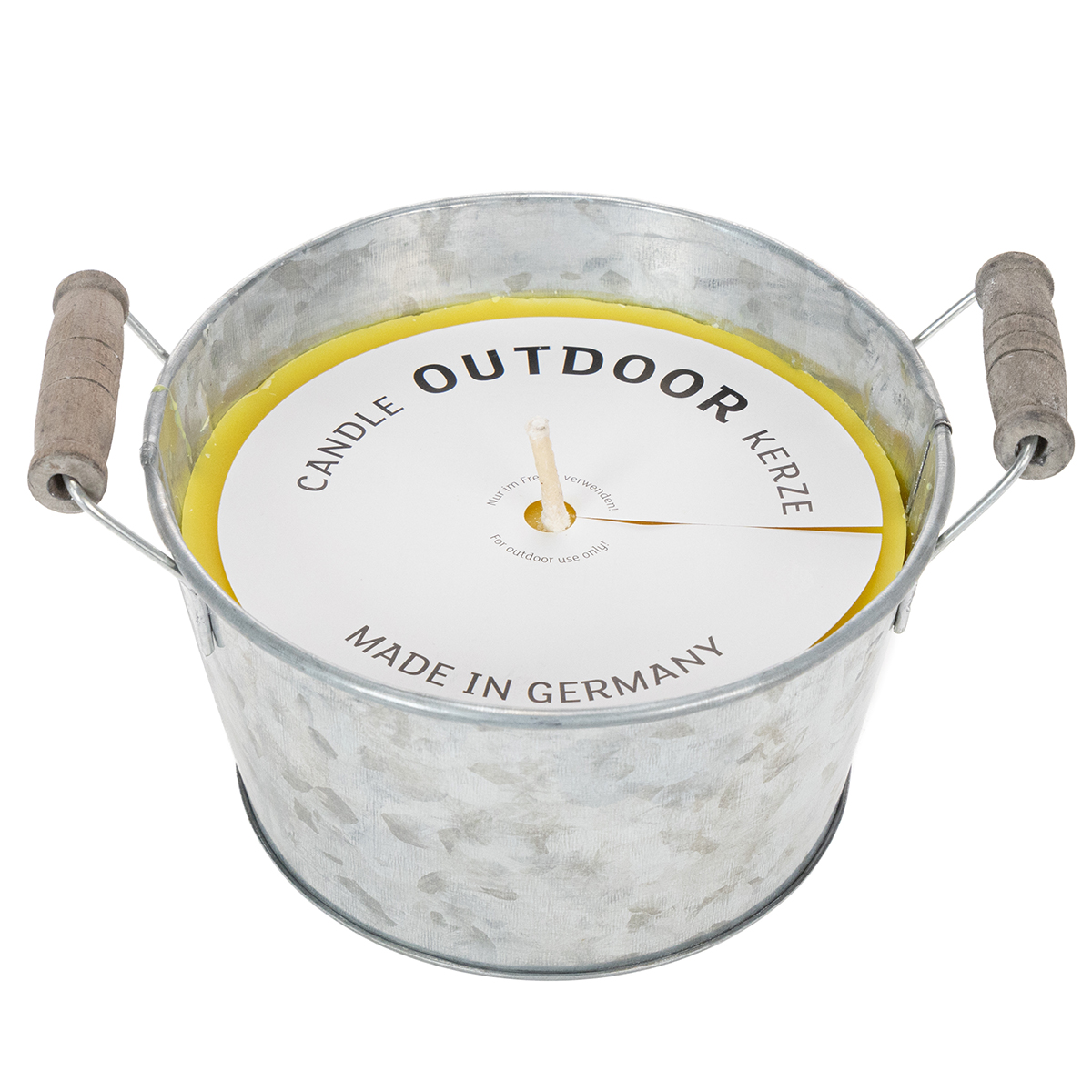 Candela profumata alla citronella per esterni in secchiello: illuminazione d'atmosfera e repellente per insetti, 15 cm