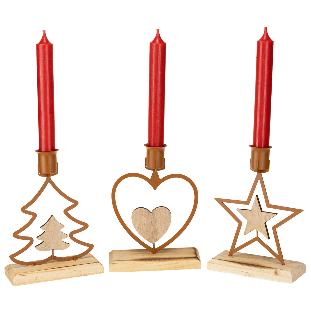 Candele candeliere stella cuore abete marrone H16,5 cm assortite 3 pezzi