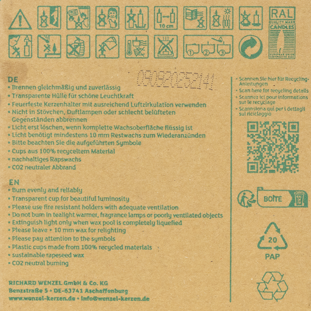 Smaltire i residui di cera con i rifiuti domestici, a meno che non si applichino norme speciali.