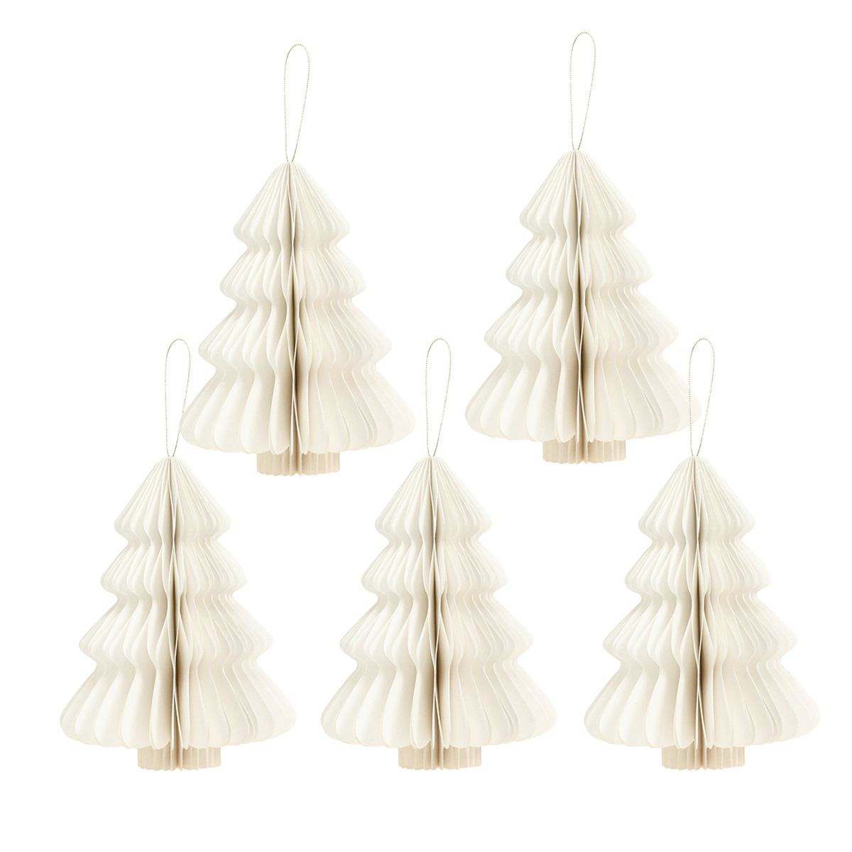 Aggiungi un bagliore festoso alla tua casa con le nostre deliziose decorazioni natalizie in carta. L'albero di Natale in bianco e argento con un pratico diametro di circa 20 cm porta un'eleganza moderna in ogni stanza. Queste decorazioni in cinque pezzi sono ideali come eye-catcher per il soggiorno e l'ufficio e possono essere facilmente integrate in diversi concetti abitativi.