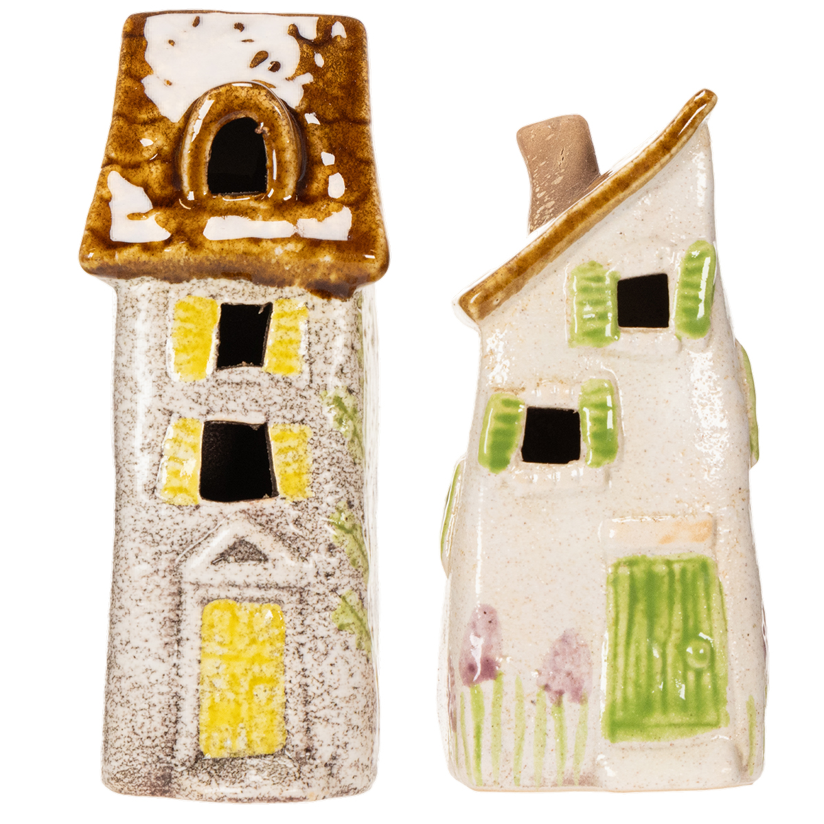Semplicemente accoglienti! Queste casette rustiche in ceramica con illuminazione a LED creano un'atmosfera davvero speciale nella tua casa. Che siano sul tavolo del soggiorno, in camera da letto o come decorazioni per la tavola da pranzo, la calda luce bianca crea un'atmosfera accogliente ovunque le posizioni. E la parte migliore: riceverai due casette dipinte a mano con cura, ognuna con dettagli affascinanti che deliziano la vista. La combinazione di ceramica naturale e colori tenui si fonde splendidamente con diversi stili di interior design, come il country o il vintage. Perfette per chi cerca una decorazione più naturale e accogliente. Ami il gioco di luci e ombre? Allora queste casette in ceramica con luci sono ideali per creare un'atmosfera confortevole: un vero highlight, soprattutto durante i mesi più freddi!