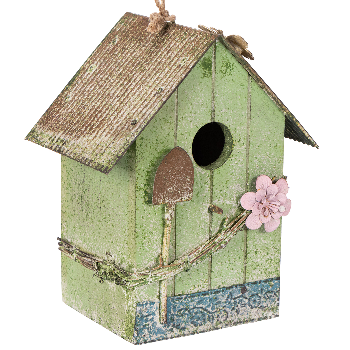 Casetta per uccelli con decorazione floreale, decorazione romantica per casa di campagna, 19 cm