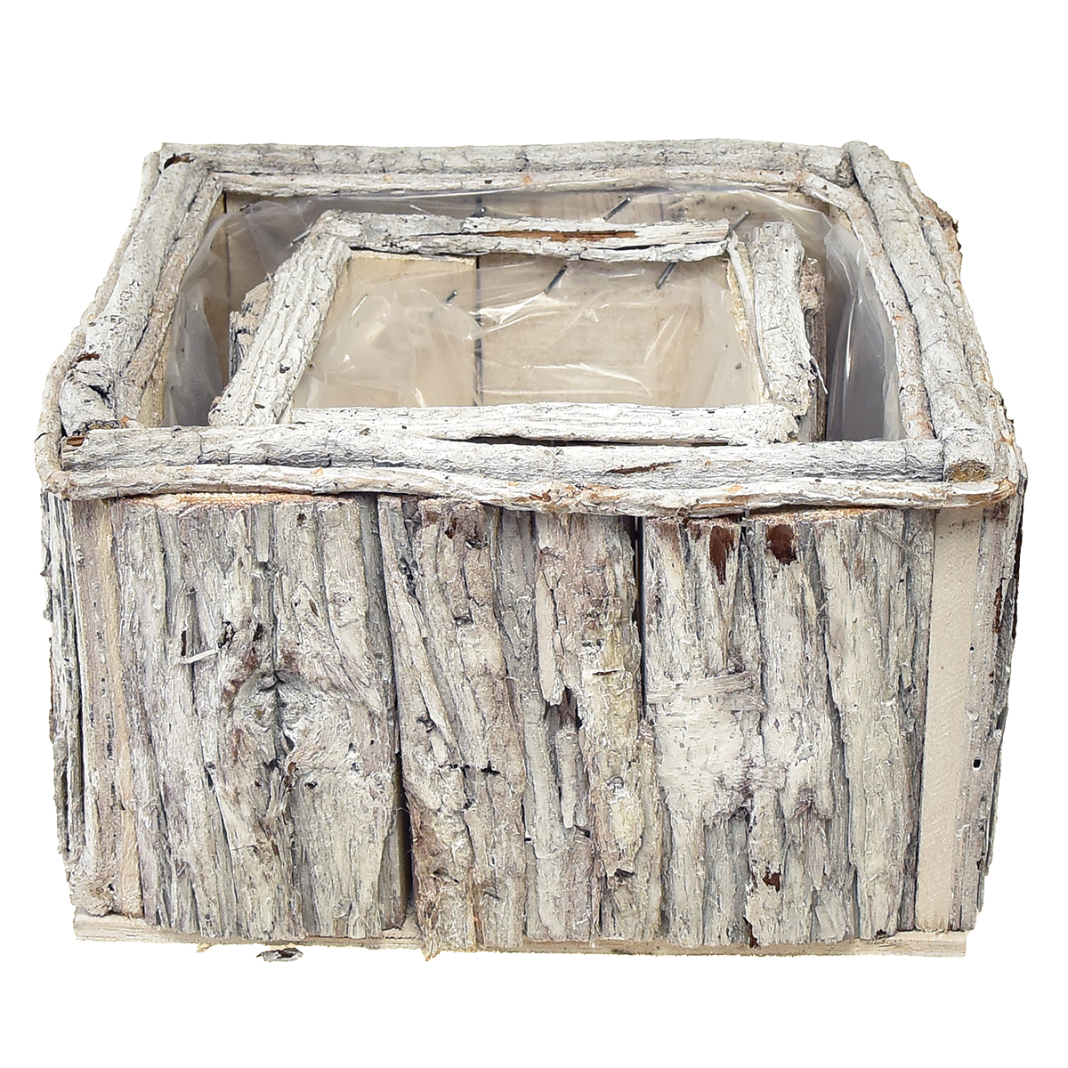 Nome del prodotto: Cassetta per piante in legno con corteccia bianco naturale 17/24 cm set da 2 pezzi
