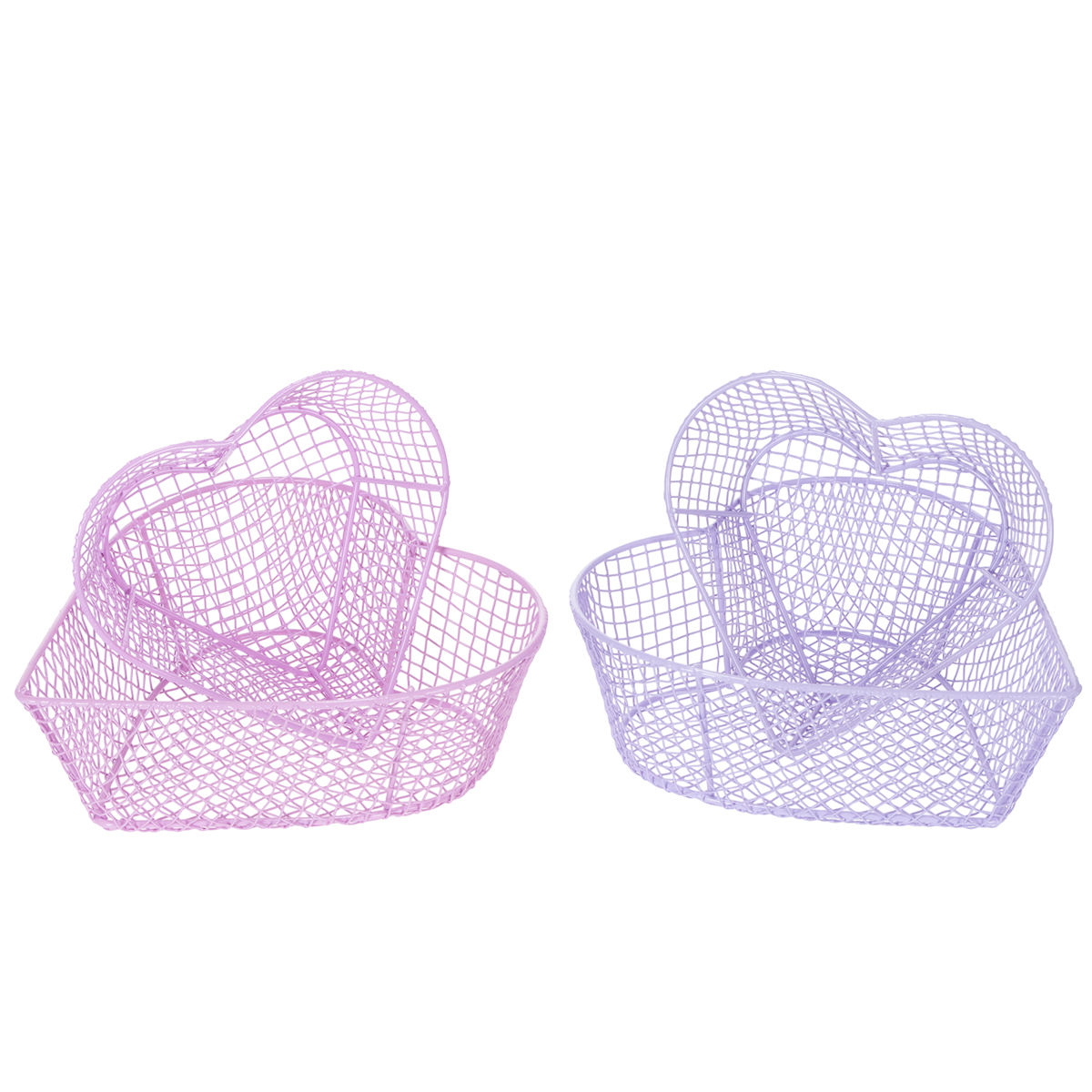 Crea un'atmosfera romantica ma ordinata con questi splendidi cestini in filo metallico a forma di cuore. Che siano usati come elemento decorativo sulla tavola, per riporre piccoli oggetti o come elegante set regalo, questi cestini in metallo a forma di cuore portano amore e ordine nella tua casa. Realizzati in robusto metallo, i cestini sono disponibili in tenui tonalità rosa e viola. Sono perfetti per l'uso in zone giorno o in spazi esterni riparati e sono la scelta ideale per romantiche decorazioni da tavola in occasioni speciali come matrimoni, San Valentino o compleanni.