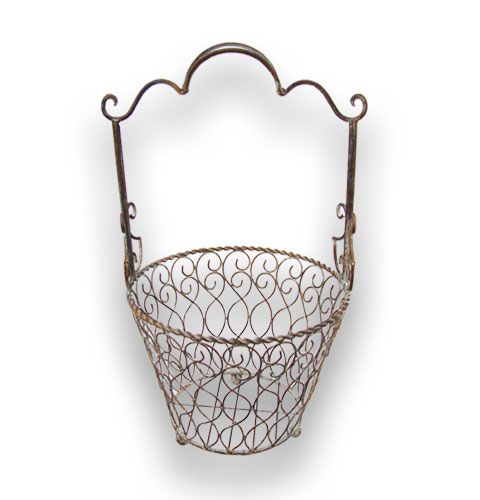 Cestini metallici per appendere o appendere, realizzati in metallo marrone, molto rustico. Si adatta meravigliosamente nel tuo giardino d'inverno o in terrazza. Adatto sia come cesto per la decorazione estiva e / o per le piante, ma che deve essere piantato in un vaso adatto prima di poter essere utilizzato.Diametro: grande: 31,5 cm, piccolo 28 cm