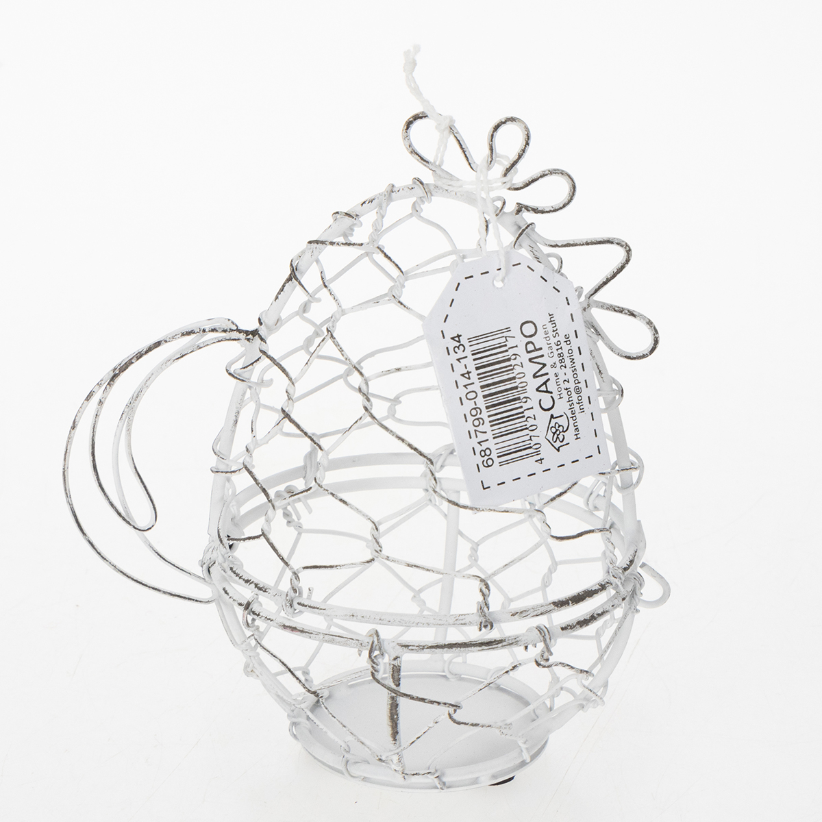 La Pasqua è alle porte e tutti noi amiamo decorare le nostre case e le nostre tavole con decorazioni festive. Cerchi qualcosa che non sia solo funzionale ma anche originale? Questo cestino decorativo in filo metallico a forma di gallina è proprio quello che fa per te. A prima vista, la sua delicata struttura in filo metallico bianco brillante dona al tuo soggiorno o alla tua tavola pasquale il perfetto tocco shabby chic. Che venga utilizzato come cestino pasquale per uova colorate o semplicemente come elemento decorativo, questo grazioso accessorio porterà una ventata di aria fresca alle tue decorazioni pasquali e primaverili.