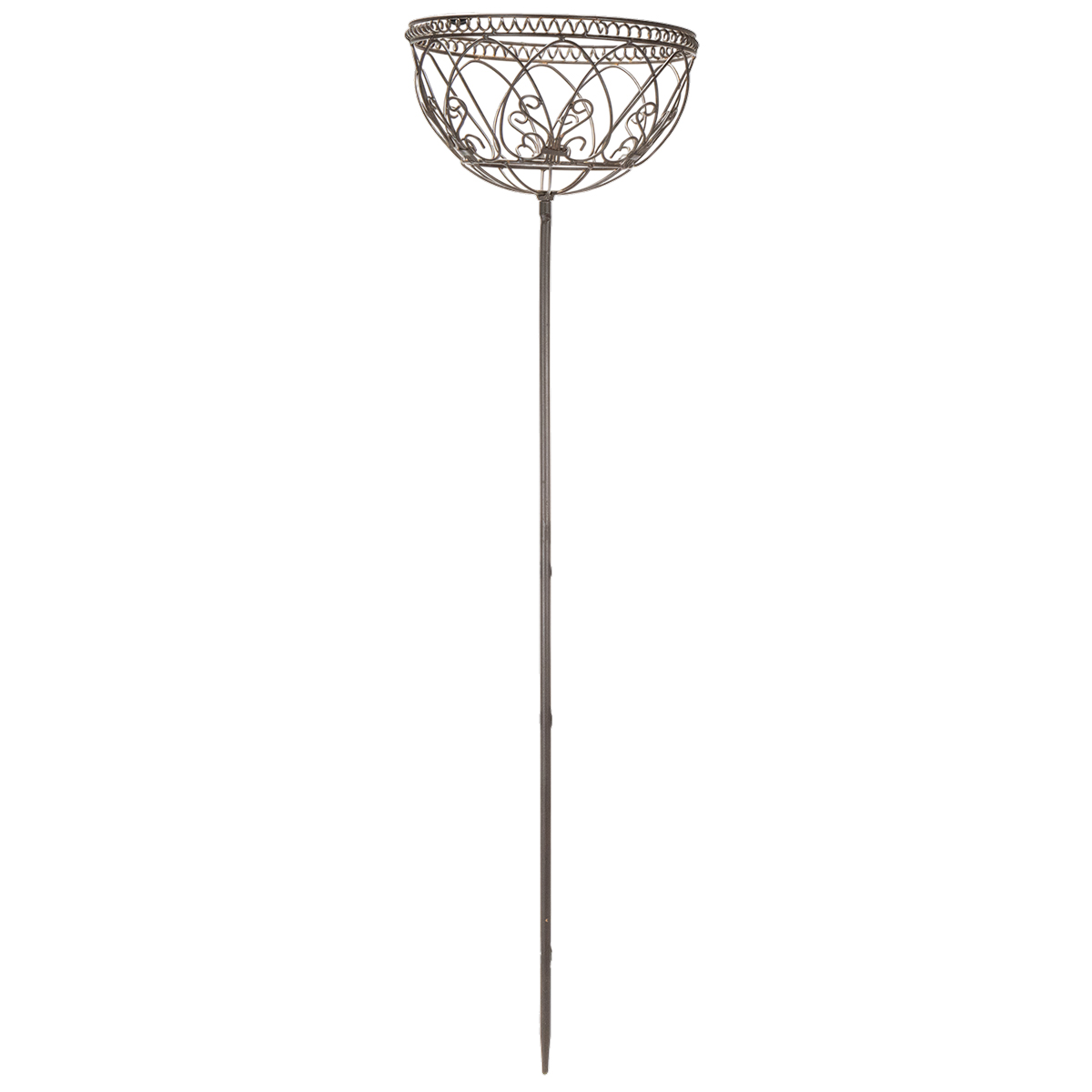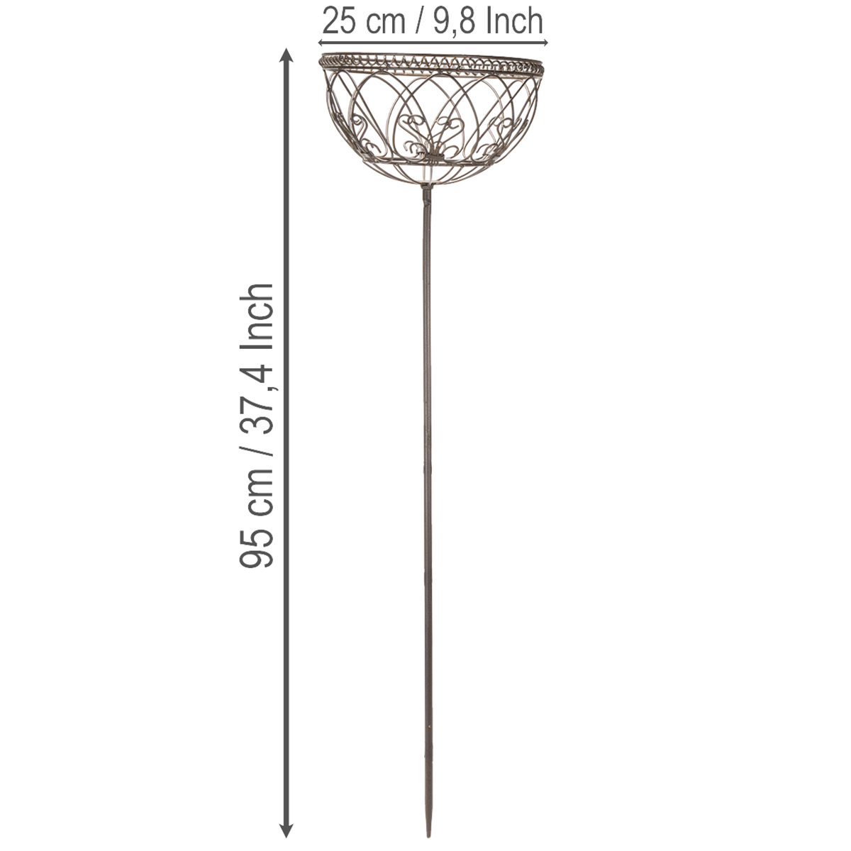 Aggiungete un tocco di romanticismo al vostro giardino, patio o balcone con questo cestino decorativo in metallo in stile vintage. Realizzato in robusto metallo verniciato di marrone, questo cestino da giardino di alta qualità è perfetto per aree esterne riparate. Con un'altezza di 95 centimetri e un diametro di 25 centimetri, emana eleganza e catturerà sicuramente l'attenzione. Che venga utilizzato come ciotola decorativa in giardino, come elegante traliccio in stile vintage o come portavaso per il patio, questo cestino in metallo crea un'atmosfera affascinante e colpisce per la sua versatilità.