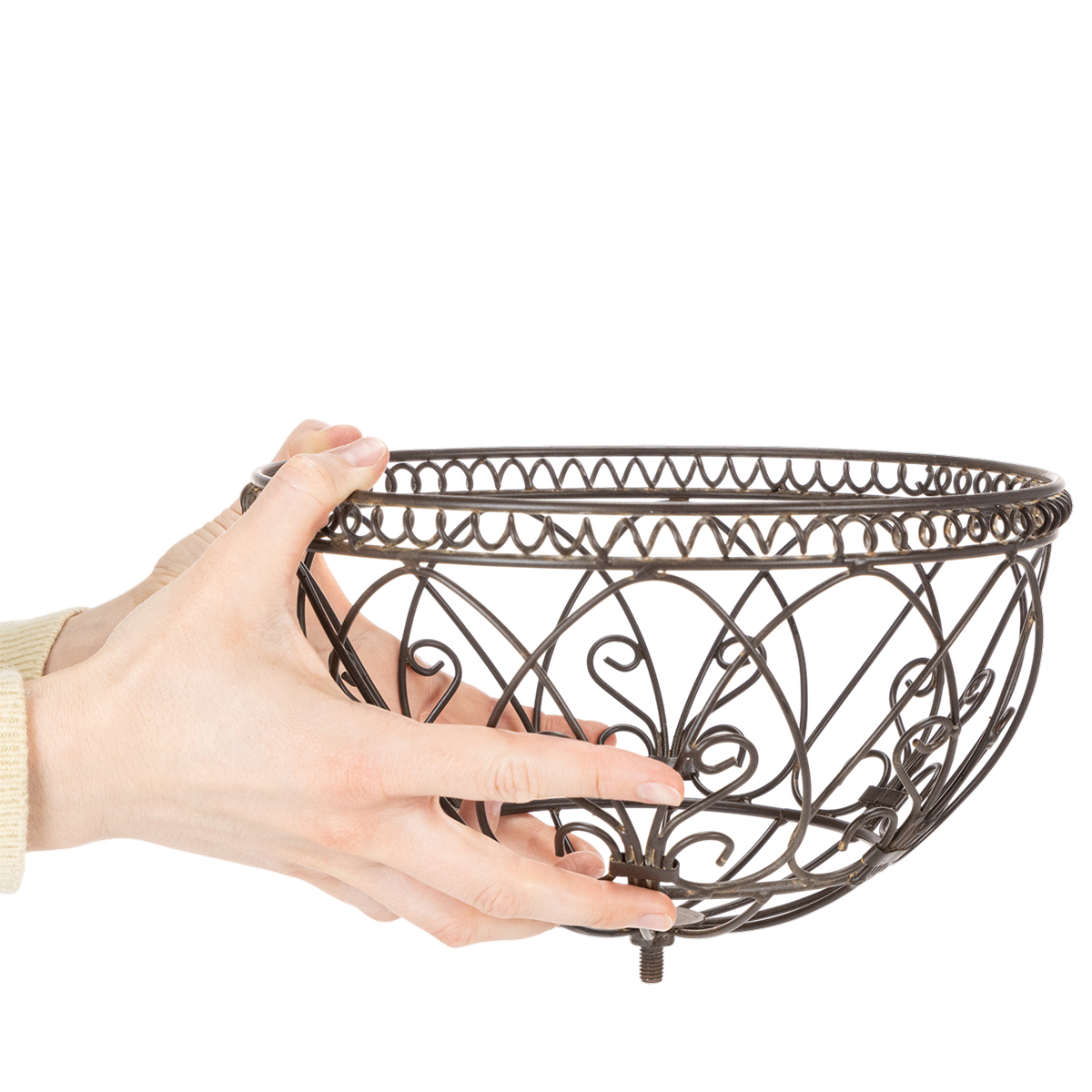 Questo cesto in metallo su paletto è molto più di un semplice elemento decorativo da giardino: è un pezzo unico che racconta una storia. La sua raffinata lavorazione artigianale, con linee fluide e dettagli delicati, riflette l'eleganza dello stile vintage. Utilizzatelo come cesto decorativo per esporre fiori freschi, erbe aromatiche o decorazioni stagionali come gli ornamenti pasquali. In alternativa, può fungere da elegante elemento decorativo in metallo per il giardino, creando un punto focale di grande effetto accanto ai vostri mobili da giardino. Il colore marrone si armonizza splendidamente con il legno, il rattan o altri materiali naturali e si abbina facilmente a vasi, fiori artificiali o ghirlande.