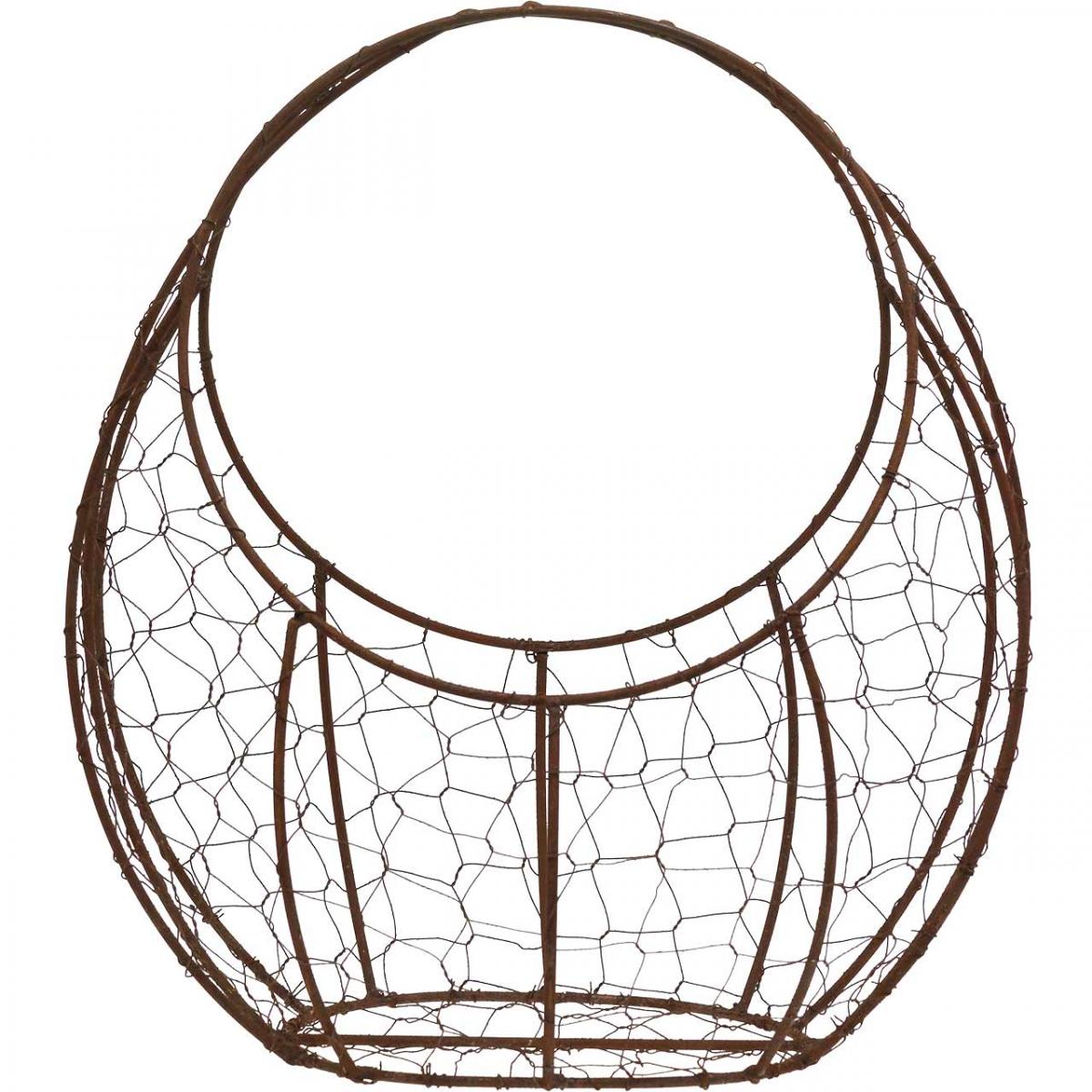 Nome del prodotto: Cesto in filo metallico, fioriera in metallo, decorazione primaverile, cestino pasquale marrone, patina H34cm L30cm