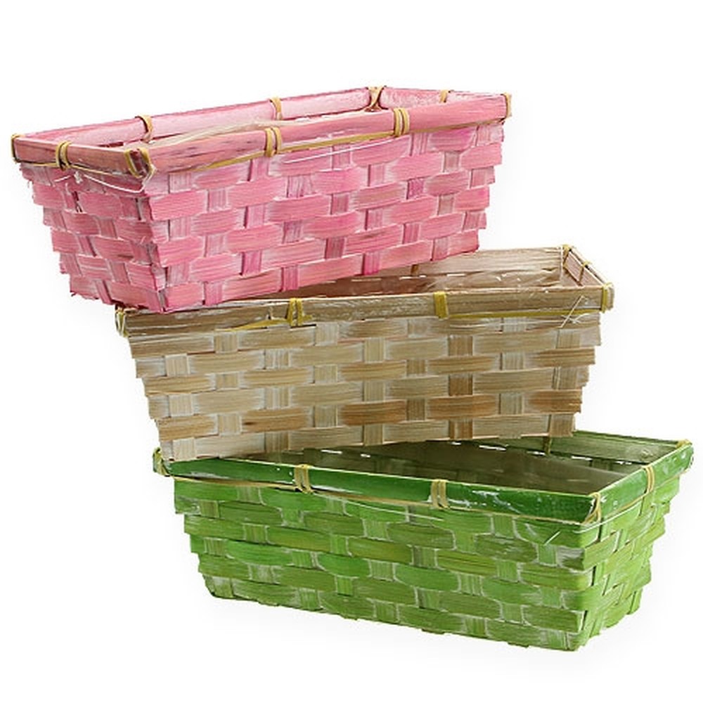 Ogni cestino quadrato dal set assortito multicolore ha approssimativamente le dimensioni 20 x 11 x 7 centimetri. L'impronta misura circa 16 x 7 centimetri. Nel set di 8 pezzi, i colori rosa e verde sono tre volte, il colore natura due volte.
