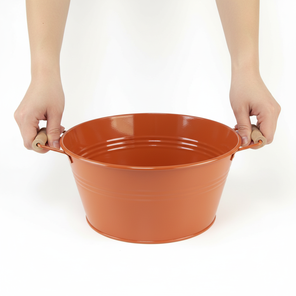 Nel nostro negozio puoi trovare anche una versione rosso intenso della ciotola decorativa con manici e secchi in metallo in questo design. Combina diverse piante in questa decorazione in metallo per creare un elegante completo primaverile.