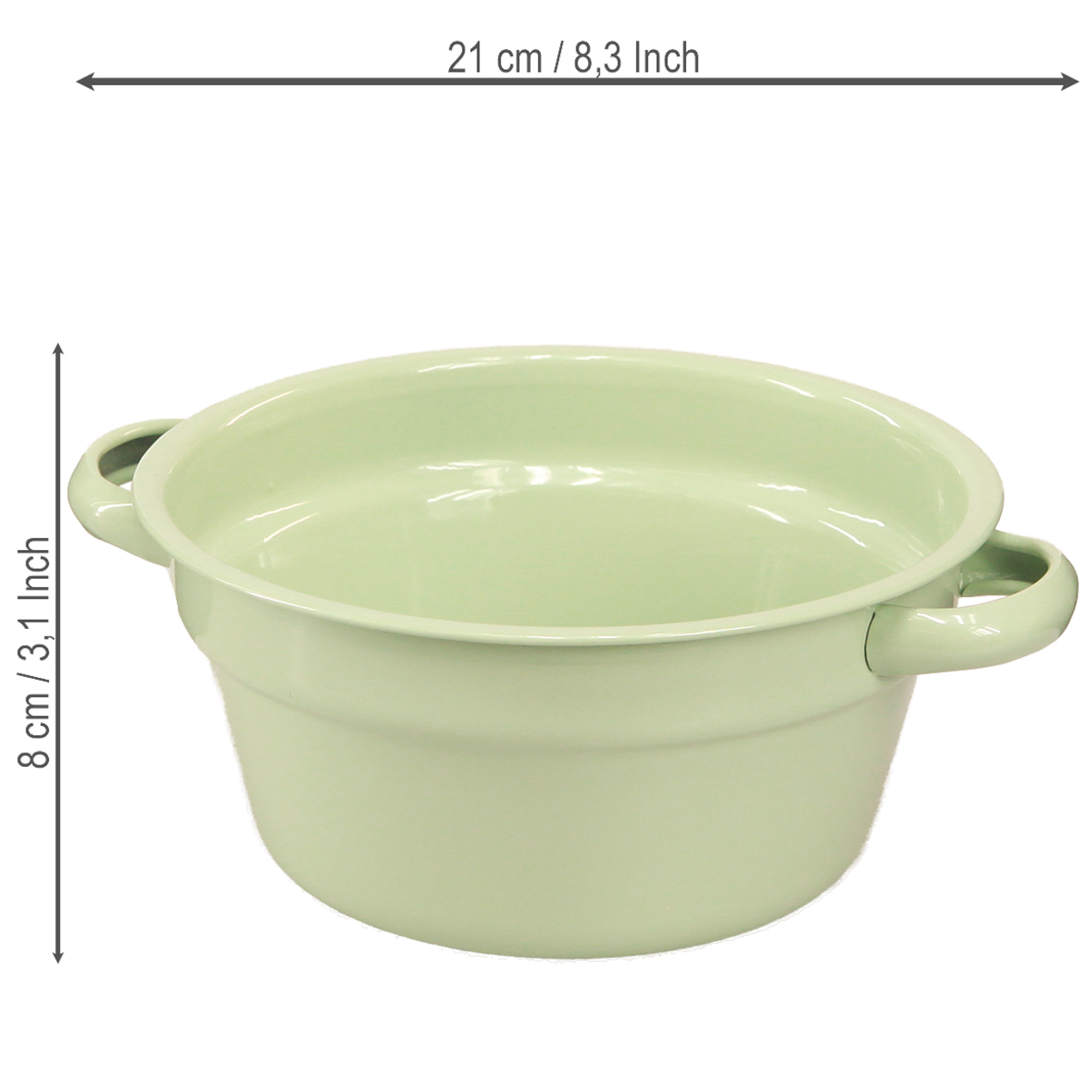 Immagina di entrare in un soggiorno in cui i toni pastello tenui aggiungono un tocco rilassante ma elegante. La nostra ciotola in metallo dai delicati colori pastello è esattamente l'elemento decorativo che trasformerà la tua stanza in un luogo di calma e stile. Con un diametro di circa 17 cm e un'altezza di circa 8 cm, queste ciotole in metallo verniciato conferiscono un tocco di leggerezza e modernità a qualsiasi ambiente. Grazie alle due maniglie, non sono solo eleganti ma anche pratici. Disponibili in quattro colori di tendenza, si integrano perfettamente in diversi stili d'interni, dal moderno stile scandinavo al sognante stile country. Scoprite come queste piccole ciotole decorative in metallo possano fungere da elemento di attrazione sul tavolino da caffè e da funzionale soluzione di contenimento in cucina. La varietà dei loro utilizzi li rende un accessorio indispensabile per decoratori creativi e amanti del fai da te.