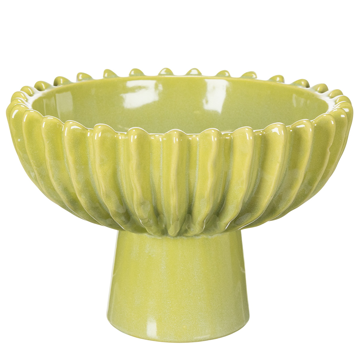 La nostra ciotola in ceramica verde, con un diametro di 21 cm, non è solo un accessorio funzionale per la casa, ma un pezzo di design moderno. Il materiale ceramico di alta qualità colpisce per la sua superficie liscia e lucida e la lavorazione precisa. Il design a coste è particolarmente suggestivo, con un giocoso riferimento alla natura e un richiamo ai cactus. Il fresco colore verde rafforza questa impressione e dona vivacità a qualsiasi ambiente.