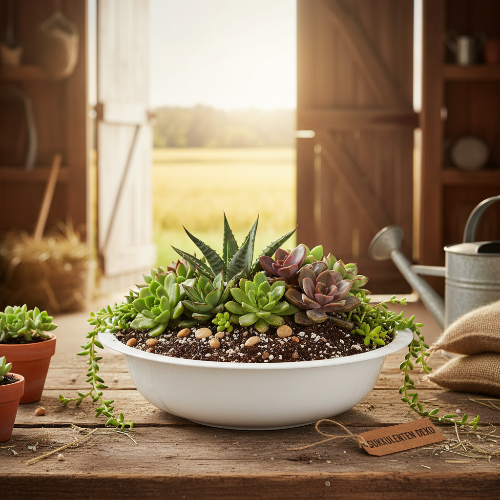 La ciotola decorativa non è adatta solo per piantare piante (è meglio coprire la fioriera con un foglio di pellicola), ma anche per allestimenti da tavolo a cui si desidera dare un tocco leggermente rustico.