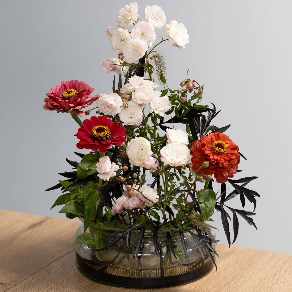 La ciotola si allarga leggermente verso il basso, in modo da poter utilizzare un'area di circa 24 centimetri per composizioni come ramoscelli e rami. Anche sul pavimento è possibile creare facilmente diorami, come nidi pasquali con muschio, uova e conigli e villaggi invernali con neve artificiale, figure di angeli e lucine.
