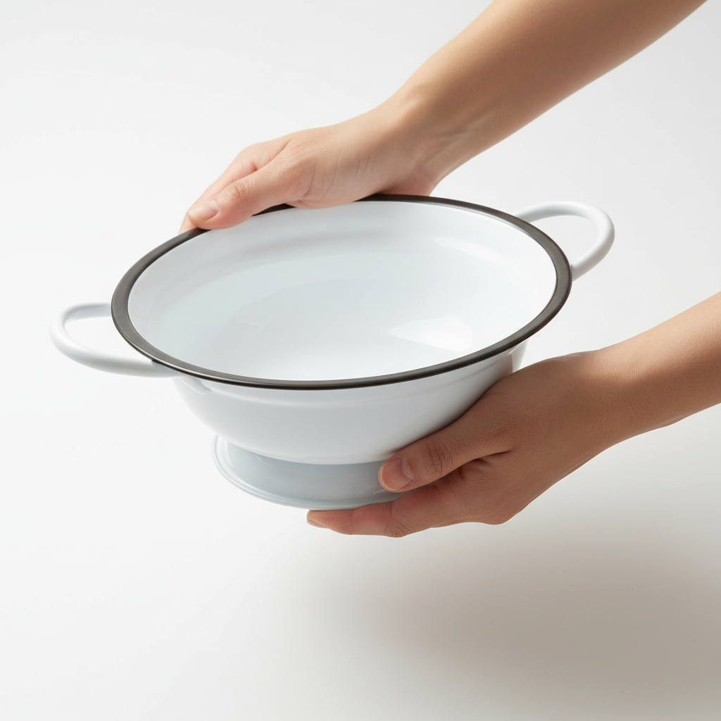 Ciotola in metallo bianco con moderno aspetto smaltato per una decorazione elegante