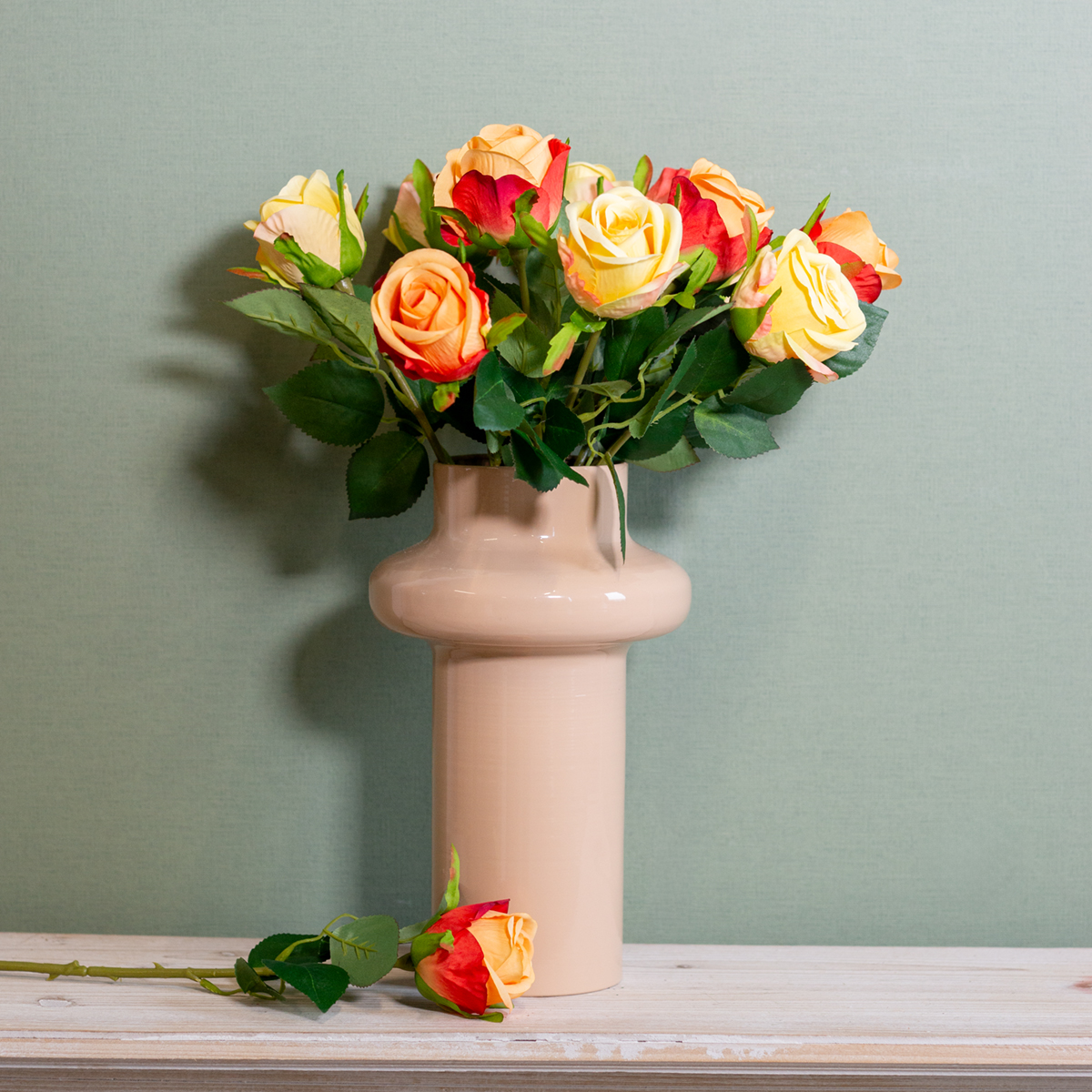 Chi non ama creare una casa elegante e accogliente? Queste rose artificiali di alta qualità in un caldo arancione aggiungeranno un tocco di classe al vostro spazio abitativo. Perfette per il soggiorno, la sala da pranzo o persino l'ufficio, questo bouquet di rose artificiali aggiunge un tocco speciale a qualsiasi stanza. Avete mai sperimentato come un bouquet decorativo disposto con cura possa migliorare l'atmosfera? Inoltre, questa bellezza rimane fresca ed è facile da curare! Nessun appassimento, nessuna annaffiatura, solo puro piacere. Lasciatevi ispirare e create un ambiente che rifletta la vostra personalità. Che si tratti di un'elegante decorazione da tavola o di un fresco tocco in bagno, questi fiori artificiali non lasciano nulla a desiderare. Il loro look senza tempo si armonizza splendidamente con gli stili di interior design moderni, classici e scandinavi. Provateli: rimarrete sorpresi dal fascino che queste rose porteranno nella vostra casa!
