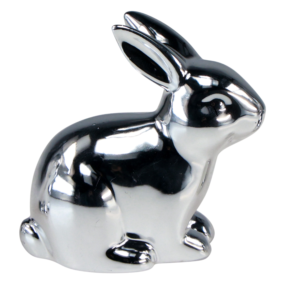 Coniglietti pasquali seduti in ceramica aspetto metallo argento 5,5 cm 6 pezzi