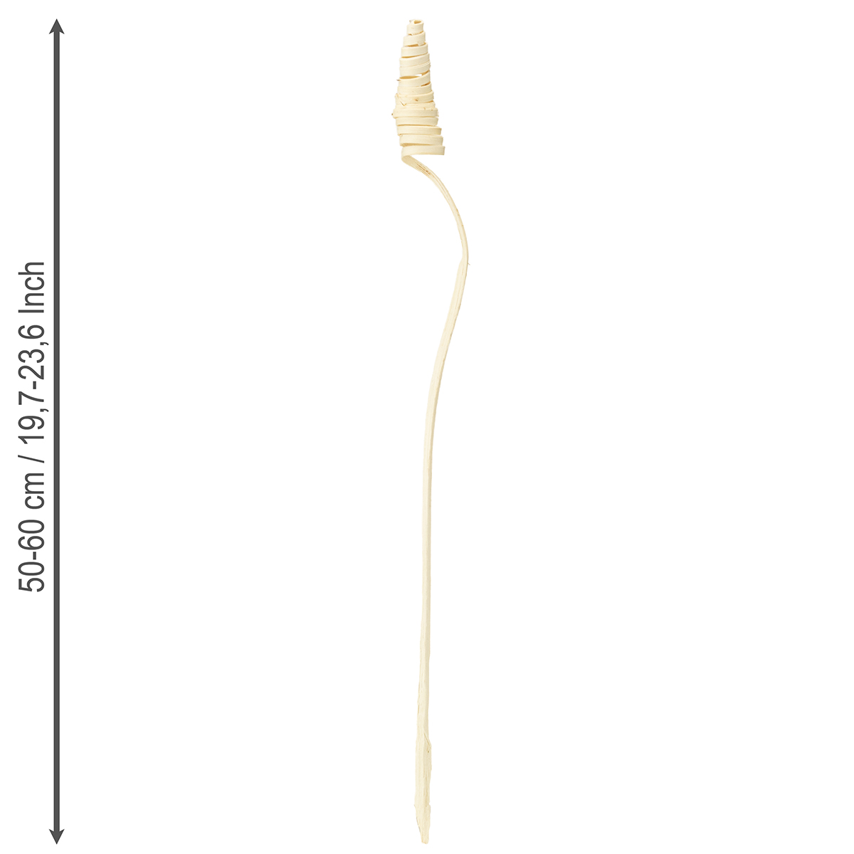 Le spirali in legno di cono di canna sono sbiancate per un aspetto nobile e vengono consegnate in un set di 25 pezzi. Poiché sono prodotti naturali, le lunghezze degli steli possono variare. Quindi i bastoncini di legno hanno una lunghezza compresa tra 50 e 60 centimetri.