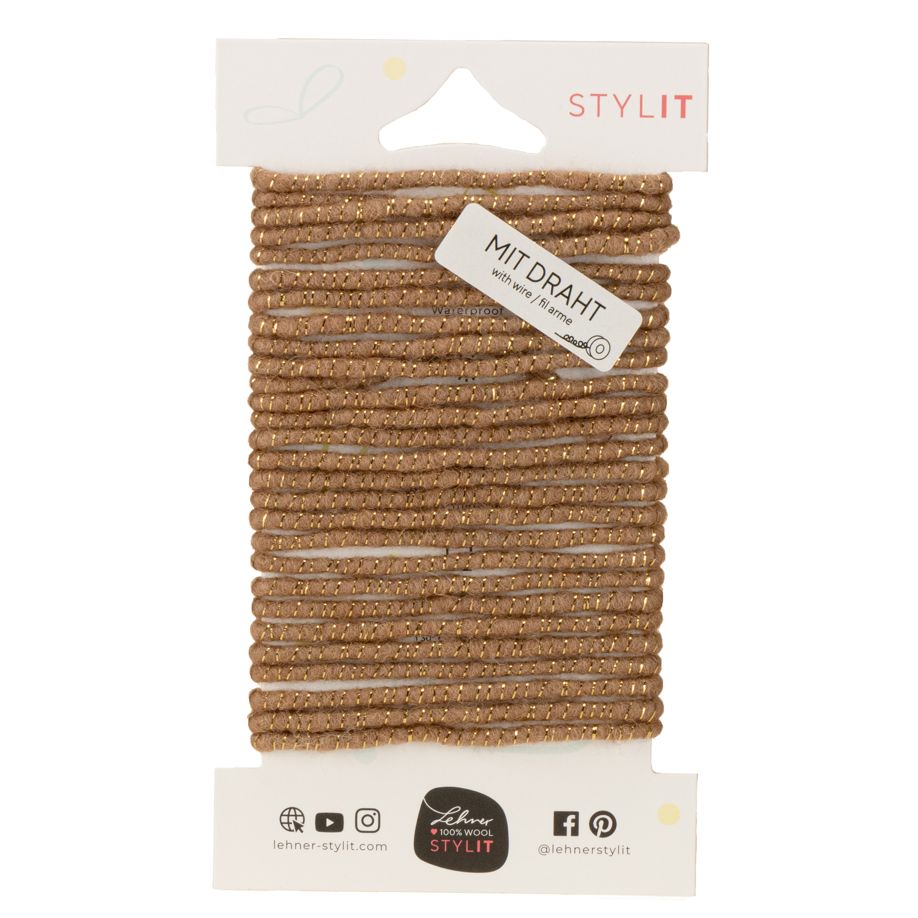 Questo cordoncino di lana marrone e oro è un vero tuttofare per decorazioni, lavori artigianali e progetti creativi. Realizzato in 100% lana e intrecciato con raffinati e scintillanti dettagli in lurex dorato, ha un aspetto particolarmente sofisticato. Perfetto per aggiungere un tocco caldo ma elegante a qualsiasi progetto. Il filo integrato all'interno mantiene il cordoncino in forma e lo rende incredibilmente facile da piegare in ogni tipo di forma, da delicati avvolgimenti a fiocchi e anelli più audaci.