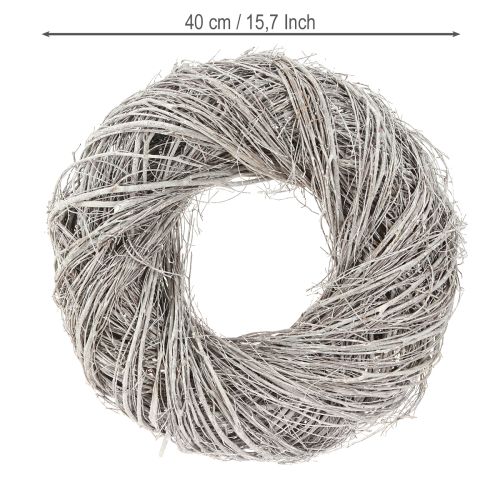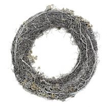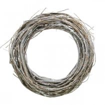 Corona decorativa in rami di olmo, bianco-grigio lavato Ø40cm