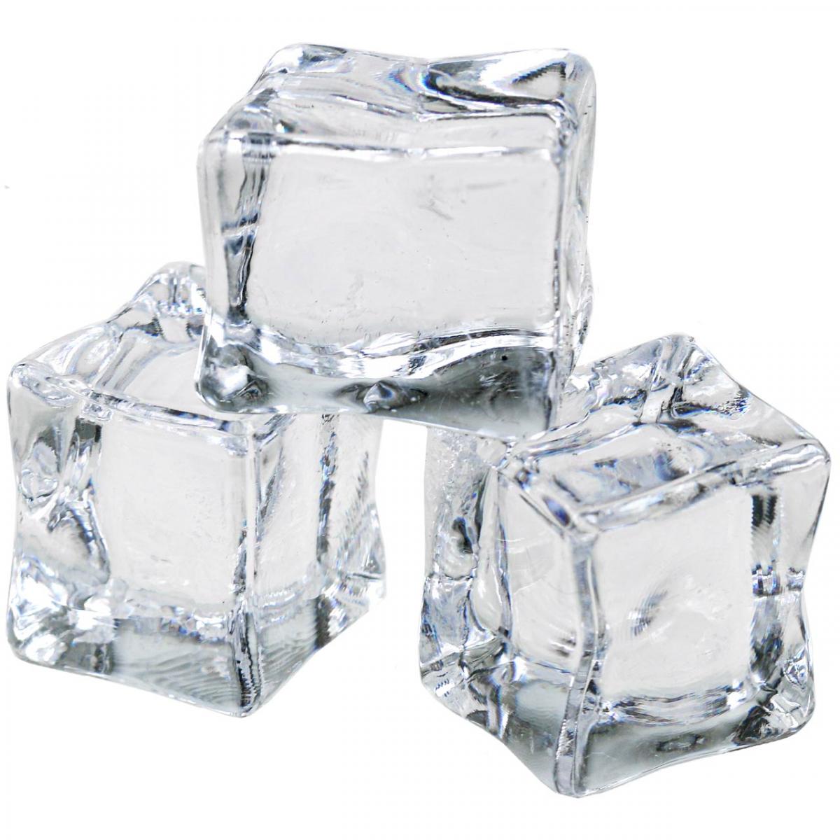 Questi cubetti di ghiaccio artificiali sono realizzati in plastica e non possono essere distinti da quelli reali in termini di forma e consistenza. Come per i cubetti di ghiaccio che si sono già un po' sciolti, anche questi hanno angoli e bordi arrotondati.
