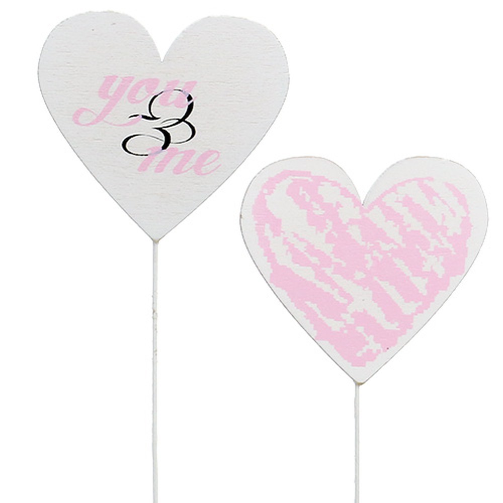 Cuore su stecco 7 cm bianco, rosa 12 pz