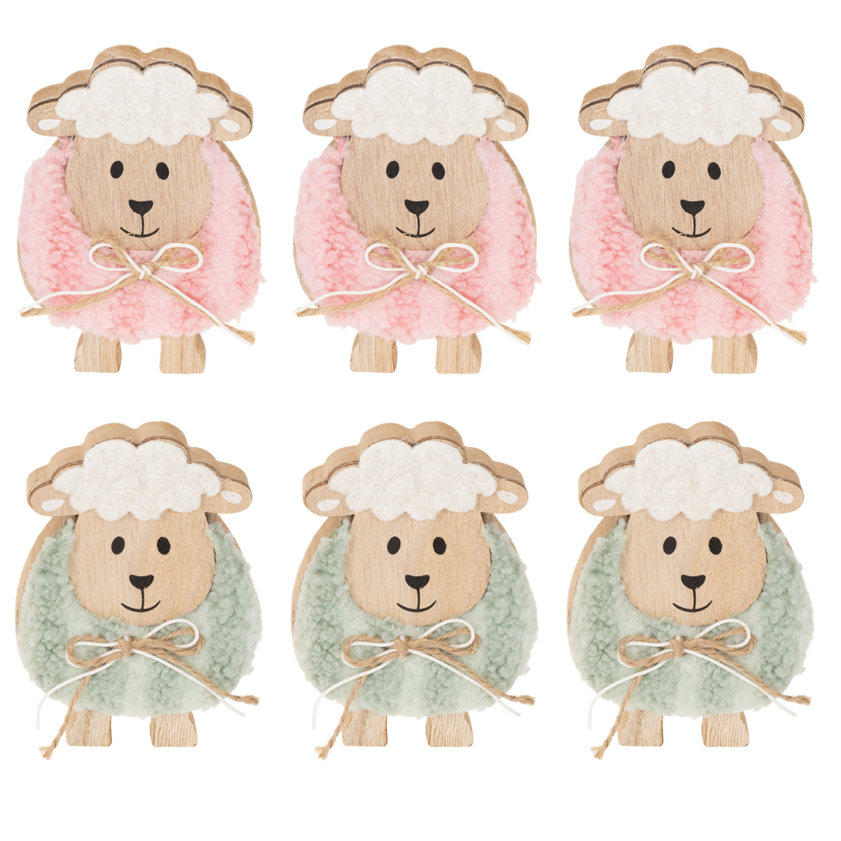 Decorazione a forma di pecora in legno, simpatica figura decorativa per la primavera e la Pasqua, decorazione da tavola, 11 cm, 6 pezzi