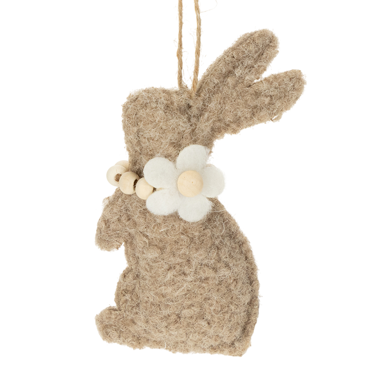 Questa decorazione da appendere a forma di coniglietto pasquale, realizzata in feltro di alta qualità, non è solo decorativa, ma anche meravigliosamente versatile. Ogni coniglietto è impreziosito da dettagli delicati, come un fiore in filigrana sul collo. Le tonalità naturali del beige e del crema si abbinano perfettamente ad altri elementi decorativi, dalle vivaci uova di Pasqua al verde fresco.