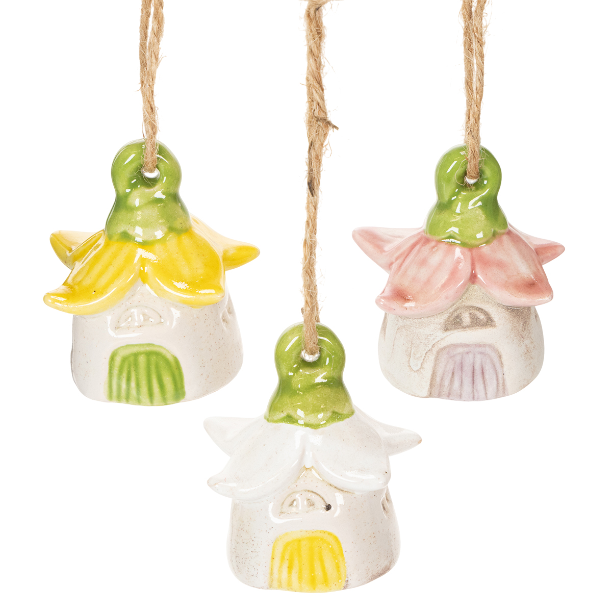 Che ne dite di un oggetto fiabesco che catturerà l'attenzione di grandi e piccini? Questa graziosa decorazione da appendere, a forma di mini casetta delle fate in ceramica, trasforma qualsiasi ambiente in un luogo magico. Che sia appesa in giardino, sul balcone o in soggiorno, queste piccole casette di fiori finemente decorate attireranno immediatamente l'attenzione! Con graziosi accenti di colore e una dimensione di 6 centimetri, questi elementi decorativi sono perfetti per creare un'atmosfera giocosa. Giocano con delicate tonalità di giallo, rosa e bianco, rendendoli al tempo stesso sobri e incantevoli. Potete disporli singolarmente o nel pratico set da sei, il che rende le possibilità di design praticamente infinite.