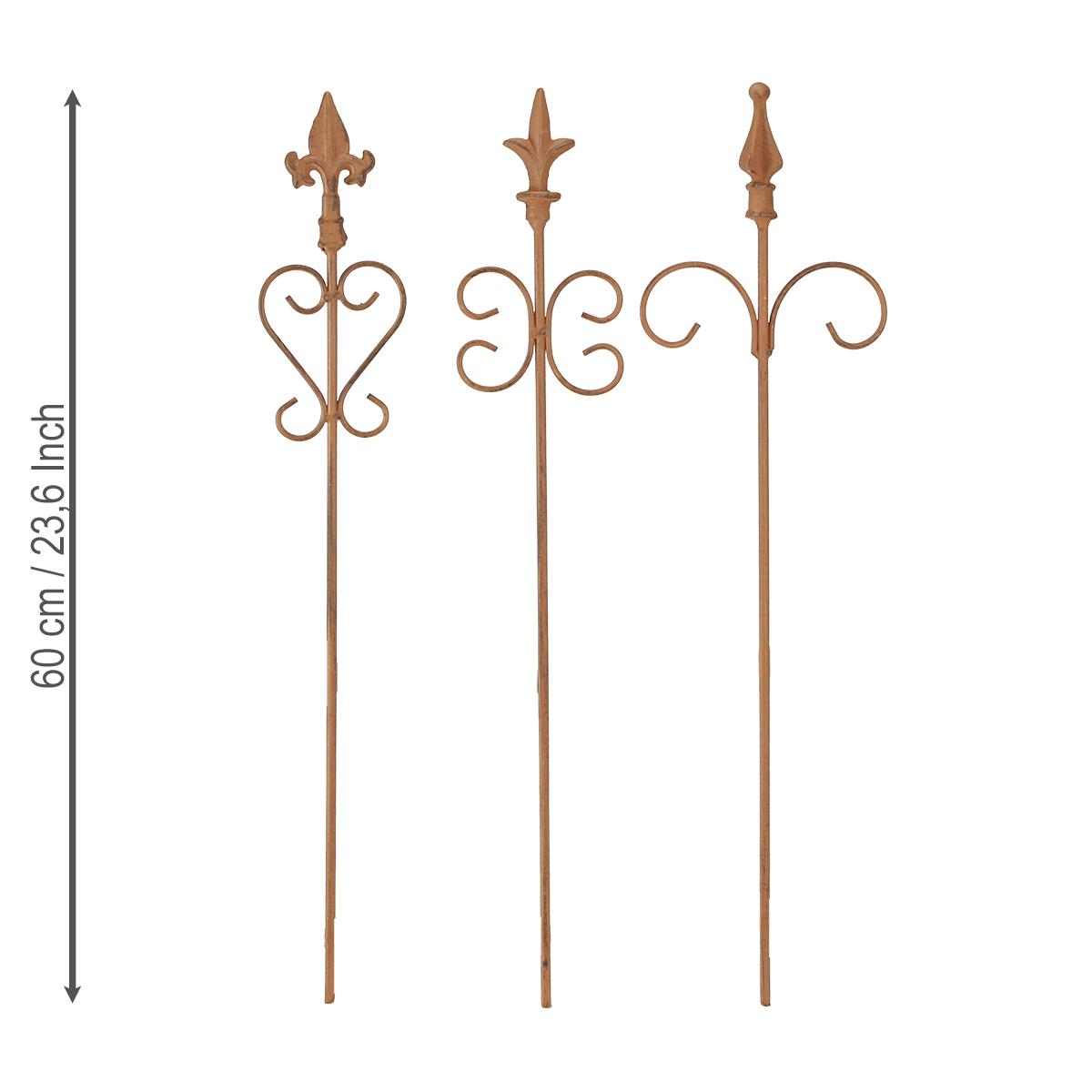 Decorazione da giardino vintage, bastone ruggine, decorazione assortita, 58 cm, 3 pezzi