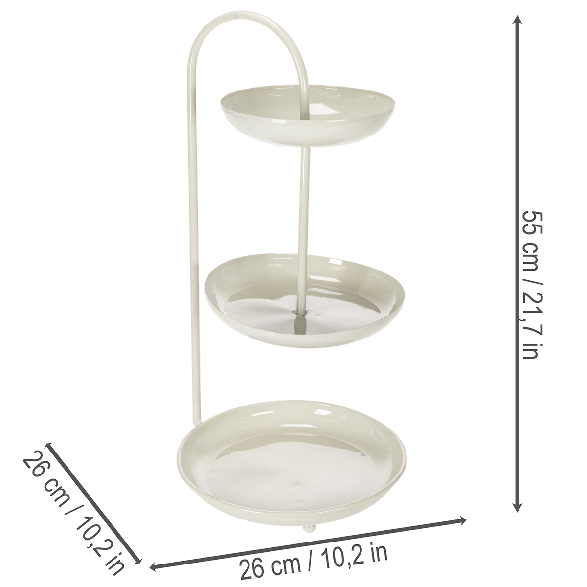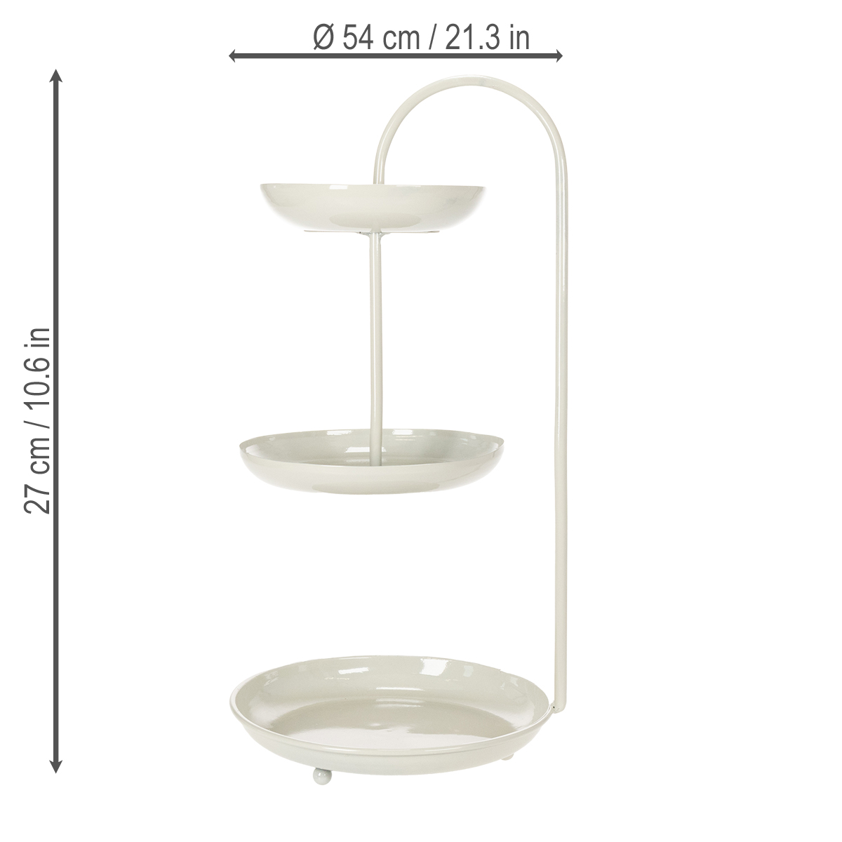 Con il suo aspetto pulito e moderno, questo supporto da portata a tre livelli si adatta a qualsiasi ambiente e aggiunge un tocco speciale al tuo arredamento. I tre livelli hanno diametri diversi (26 cm, 23 cm e 18 cm) e offrono spazio per alimenti confezionati o elementi decorativi. La combinazione di colori neutri lo rende facile da abbinare ad altri stili d'arredo, che siano minimalisti, scandinavi o persino boho. Il supporto è anche pratico: è facile da pulire, salvaspazio e robusto. Perfetto per l'uso sul tavolo del soggiorno, come centrotavola per un matrimonio o per feste a tema! Nota: non è adatto per alimenti sfusi, quindi è ideale per cioccolatini, cupcake in stampi o statuette decorative. Abbina il supporto ad altri articoli Floristik24, come un'elegante lampada da tavolo o vasi di fiori coordinati, per completare perfettamente il tuo ambiente!