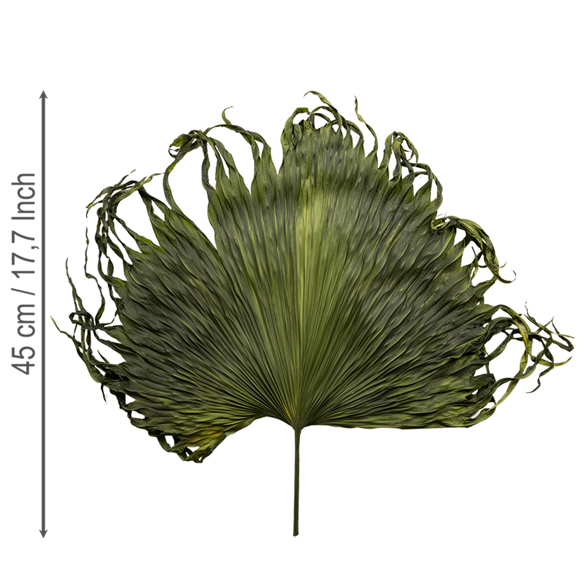 Cercate un modo naturale ed elegante per valorizzare i vostri spazi abitativi? Le foglie di palma essiccate sono una tendenza decorativa molto popolare e offrono il perfetto mix di stile tropicale e fascino rustico. Le foglie di palma della pianta, nota botanicamente come Saribus rotundifolius, in particolare, colpiscono per la loro caratteristica struttura fogliare e il meraviglioso colore verde intenso: un vero colpo d'occhio! Sia singolarmente che abbinate a fiori secchi in una composizione, queste foglie aggiungono un tocco esotico ma minimalista a qualsiasi arredamento.