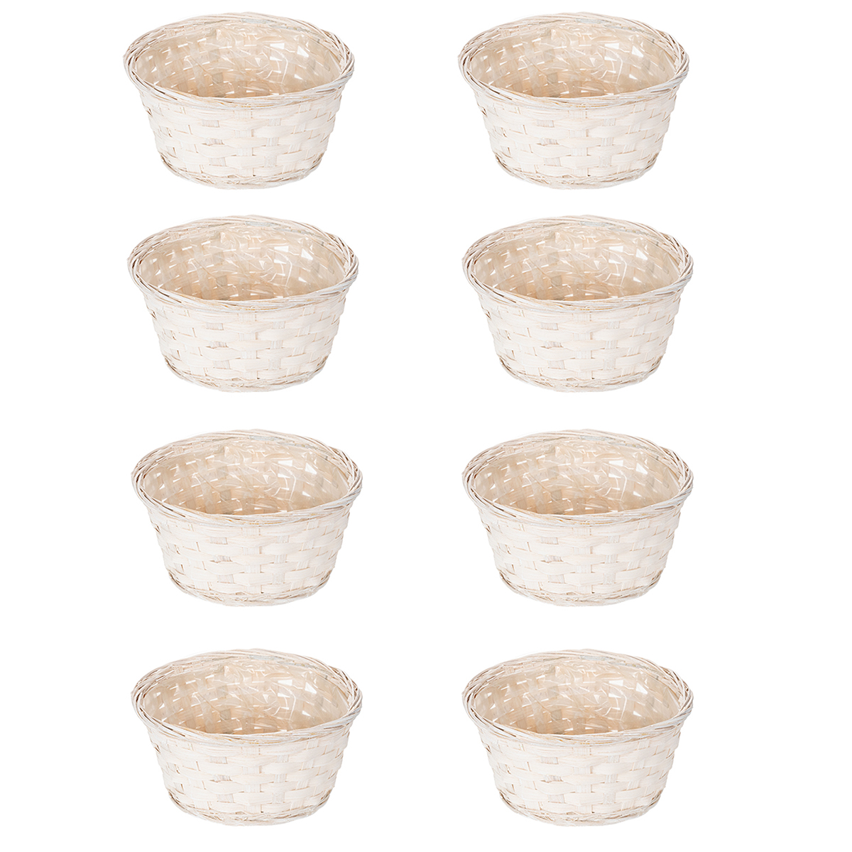 Questo set di otto cestini in vimini bianco aggiungerà un tocco decorativo alla vostra casa. Il salice intrecciato, finemente intrecciato, emana una leggerezza naturale pur essendo sufficientemente robusto per una varietà di usi. Che si tratti di un cestino portaoggetti in bagno per piccoli oggetti come i dischetti di cotone o di un'aggiunta deliziosa alle occasioni festive, le possibilità sono infinite. Questi cestini sono particolarmente perfetti per Pasqua, permettendovi di creare nidi personalizzati pieni di dolci o piccoli regali.