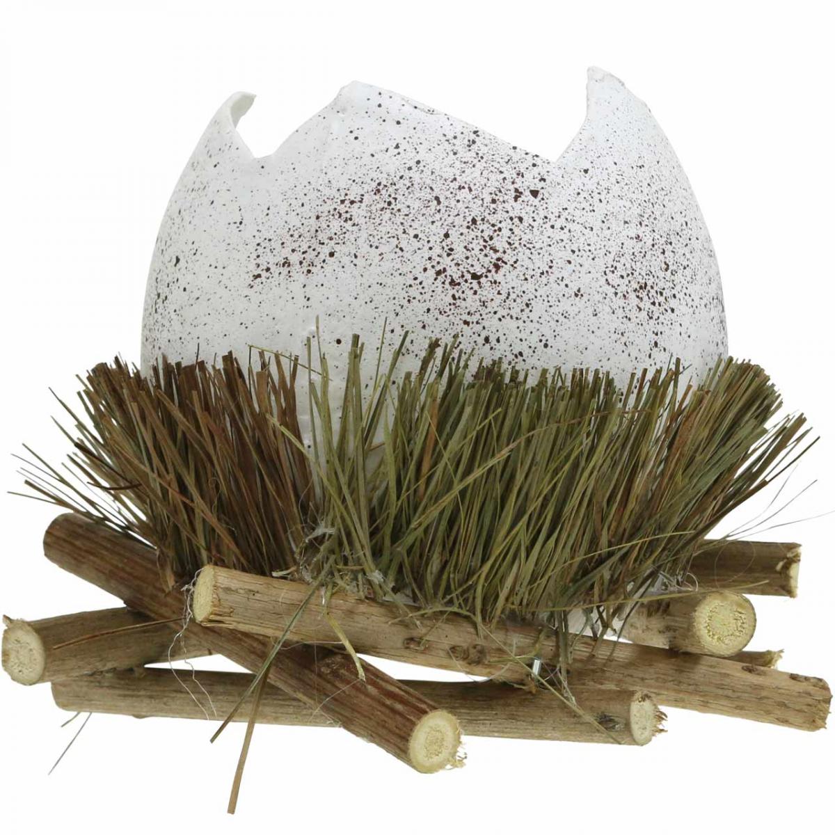 Decorazione pasquale, uovo in un nido, uovo decorativo, nido d'uccello Ø9cm H10cm Bianco, colori naturali 4 pezzi