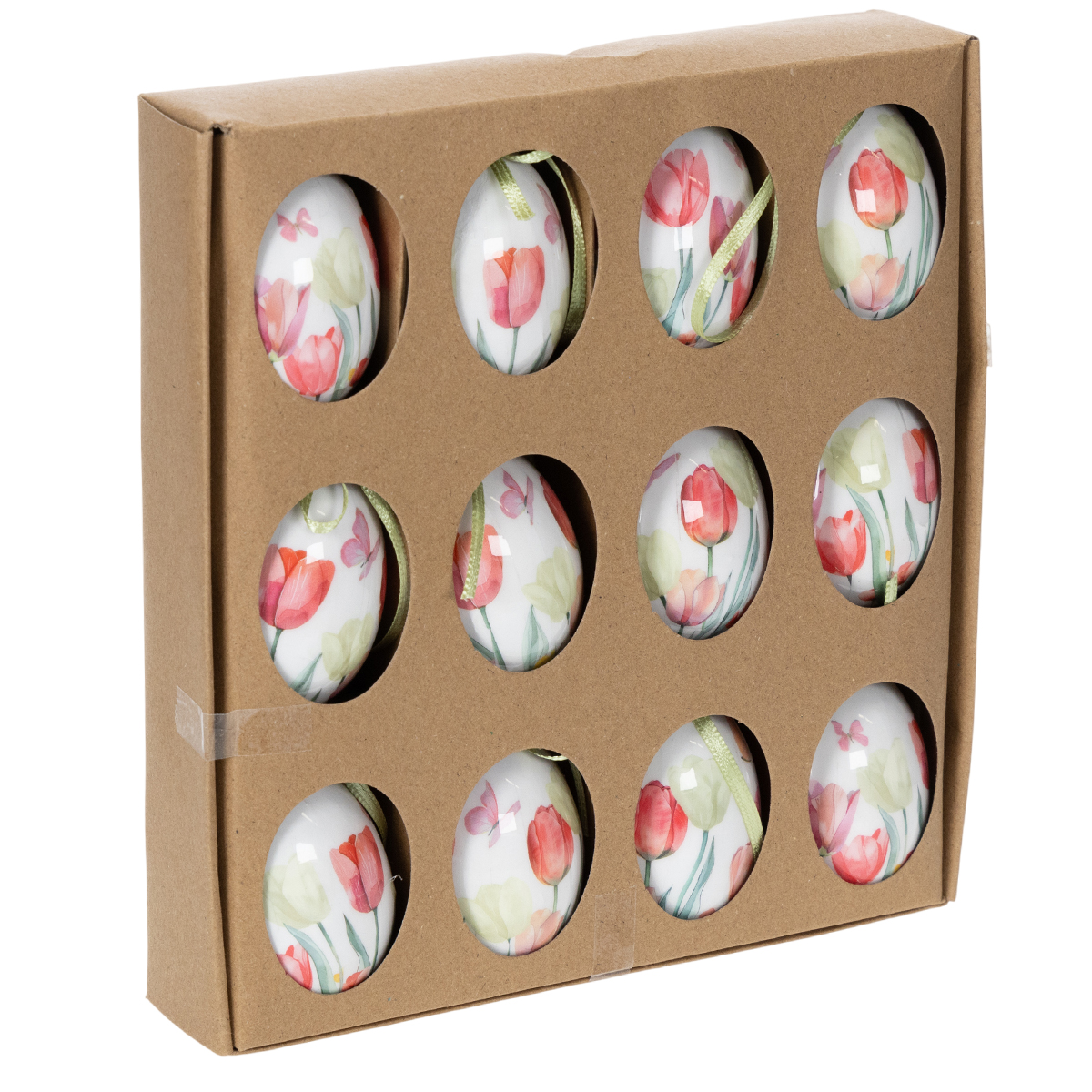 Nome del prodotto: Decorazione per uova di Pasqua, motivo tulipano con nastro per appendere e decorazione primaverile, 6 cm, 12 pezzi