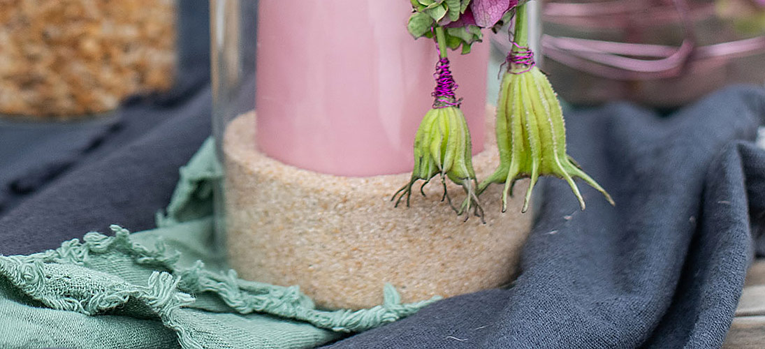 Molte idee paesaggistiche possono essere realizzate con sabbia, vetro, pietre e granuli. Sabbia, granuli e pietre decorative sono materiali decorativi apprezzati dai fioristi che consentono loro di realizzare splendide composizioni floreali per matrimoni, anniversari e altre feste.