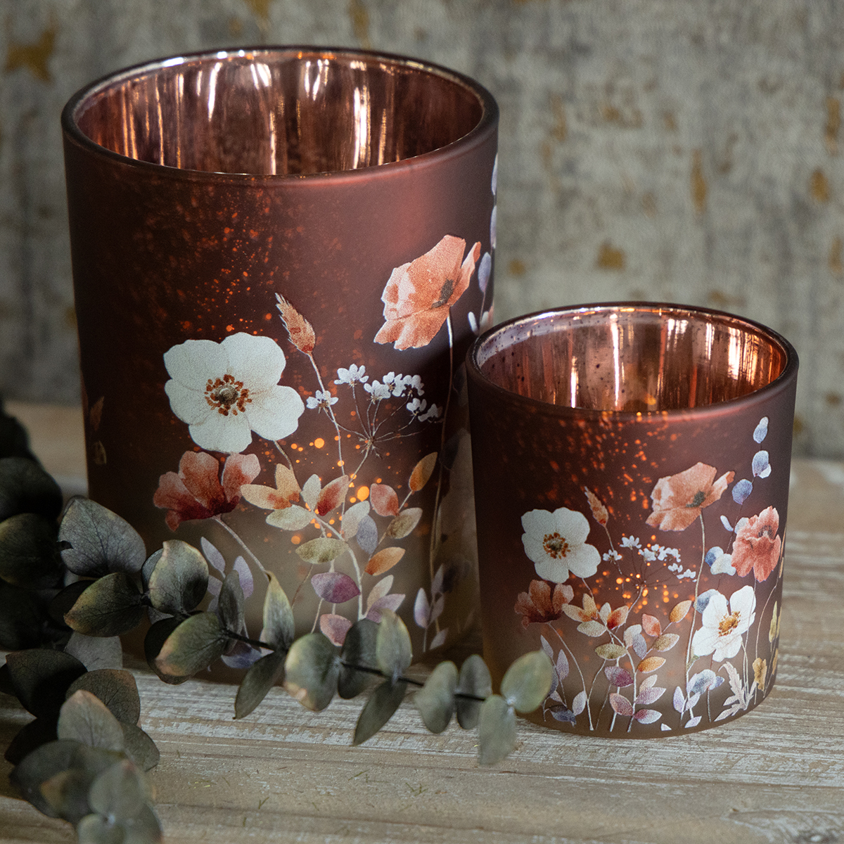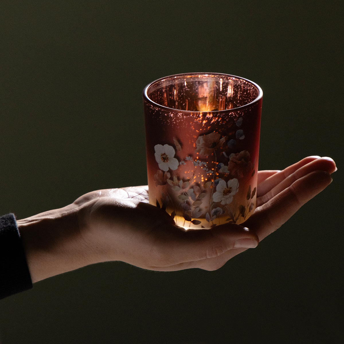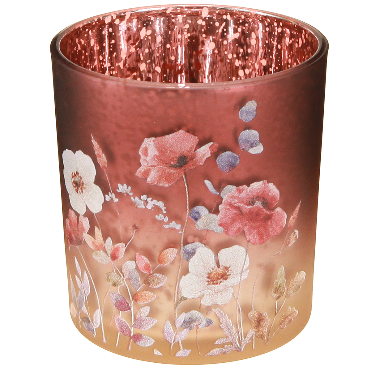 Il nostro elegante portacandele colpisce non solo per il suo aspetto, ma anche per la sua versatilità. Il vetro di alta qualità garantisce stabilità e crea un piacevole gioco di luce che mette delicatamente in risalto i delicati motivi floreali. Il design finemente lavorato nei toni del rosso e del multicolore con il suo motivo floreale è ideale per composizioni floreali, installazioni decorative moderne o anche come pezzo unico sul davanzale della finestra. Le sue dimensioni compatte (7,5 cm di diametro, 8 cm di altezza) lo rendono perfetto per stanze o tavoli più piccoli: ideale per aggiungere accenti di stile!